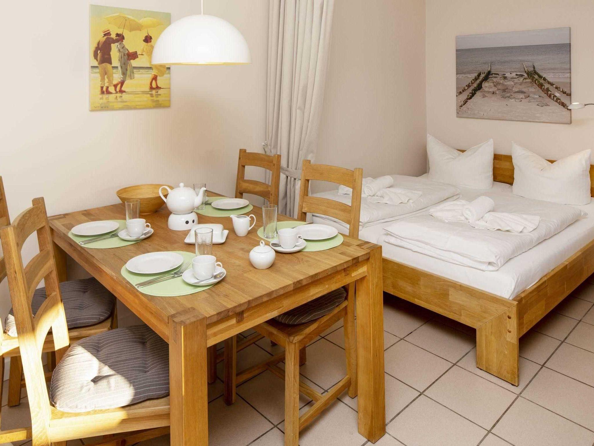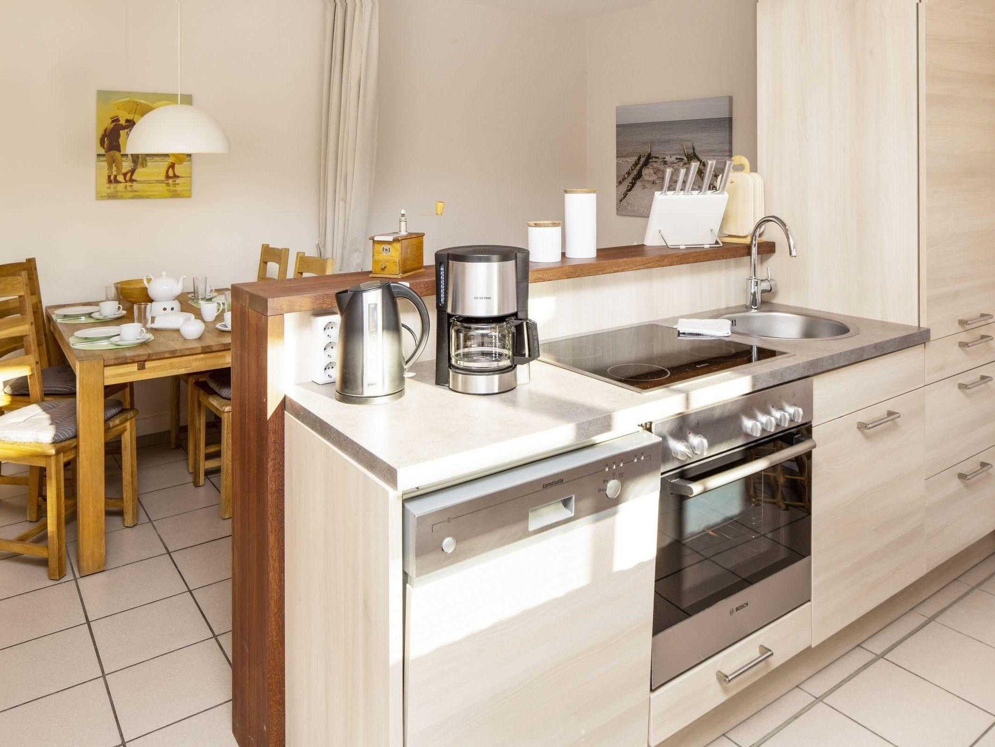 Hell, freundlich und modern eingerichtet: so präsentiert sich das Apartment „Pure Wonne Fanö“ in List. Die Ferienwohnung im Erdgeschoss ist 60 m2 groß und integriert neben einem Wohnschlafraum ein separates Schlafzimmer, so dass hier bis zu 4 Gäste bequem ausspannen können. Für ein besonderes Kochvergnügen sorgt die komplett ausgestattete offene Küche ? und wenn der Herd einmal aus bleiben soll, lockt das Speisenangebot in der Pizzeria im Erdgeschoss, die von 12 bis 21 Uhr geöffnet ist. Ein besonderes Extra ist die großzügige und sonnige Terrasse in Südwest-Lage. Spannen Sie im Strandkorb aus oder nutzen Sie die Gartenmöbel für eine entspannte Kaffeepause. Beides steht Ihnen in der Saison zur Verfügung.