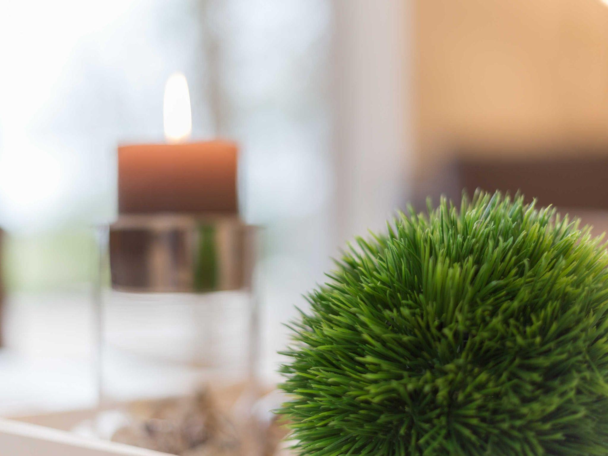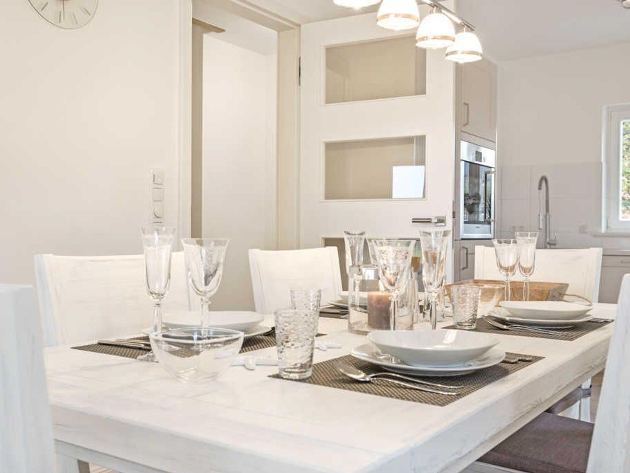 Treten Sie ein in das geräumige Hausteil, in dem sich rund 120 Quadratmeter über drei Ebenen verteilen. Bis zu sieben Personen können sich hier wohlfühlen. Im Erdgeschoss erstreckt sich ein großes Wohnzimmer mit einem behaglichen Sitzbereich und Kamin, SAT-TV und W-LAN. Neben dem Esstisch finden Sie eine Komplettküche, die unter anderem Kühlschrank und Geschirrspüler beinhaltet. Außer einer klassischen Kaffeemaschine steht Ihnen hier auch eine Senseo-Kaffeemaschine zur Verfügung. Ein aparter Holzfußboden sorgt nicht nur für ansprechendes Ambiente, sondern dank einer Fußbodenheizung ? wie auch in den übrigen Räumen ? für warme Füße. Und dank der automatischen Rolläden können Sie den Einfall des Tageslichts ganz individuell begrenzen.