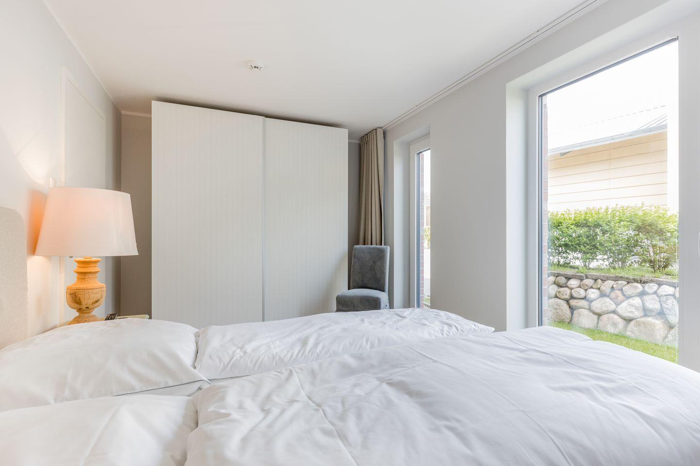 Das erste Schlafzimmer finden Sie im Erdgeschoss. Es bietet Ihnen ein Doppelbett mit Flatscreen-TV und angeschlossenem Duschbad. Im Untergeschoss des Hauses finden Sie einen weiteren Schlafraum mit Doppelbett und Flatscreen-TV. Außerdem erwartet Sie hier ein Duschbad und eine eigene, private Sauna. Das Untergeschoss können Sie zusätzlich auch durch Ihren separaten Eingang vom Treppenhaus betreten. Im Treppenhaus befindet sich ein Fahrstuhl, sodass dieses Domizil auch bestens geeignet ist, wenn das Treppensteigen schwer fällt.
