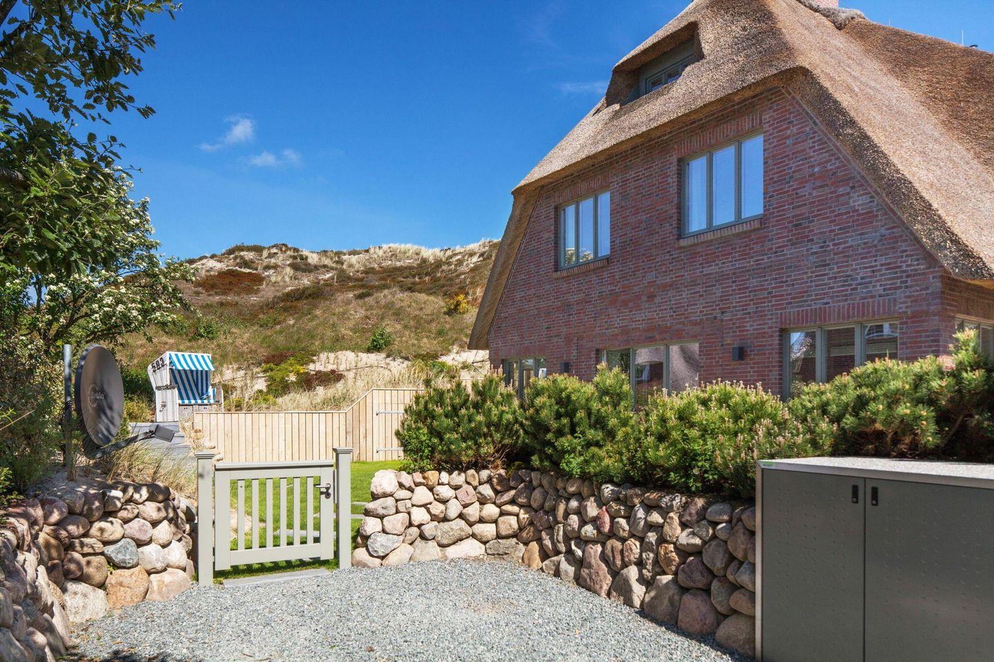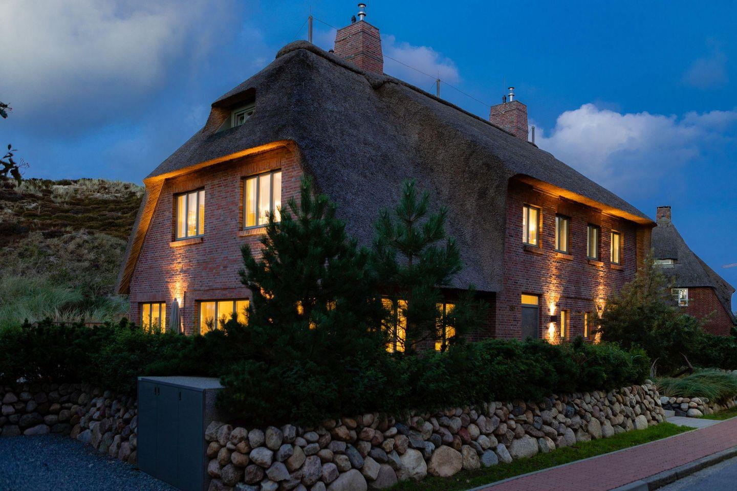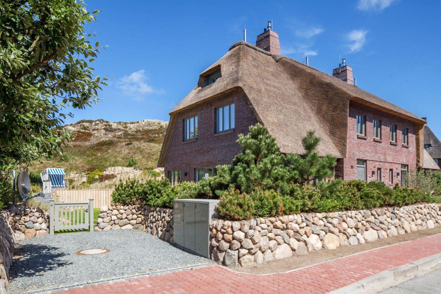 Luxuriöse Doppelhaushälfte unter Reet mit Wellness, Fitnessraum und Kinoraum in List, nahe Strand und Dünen.