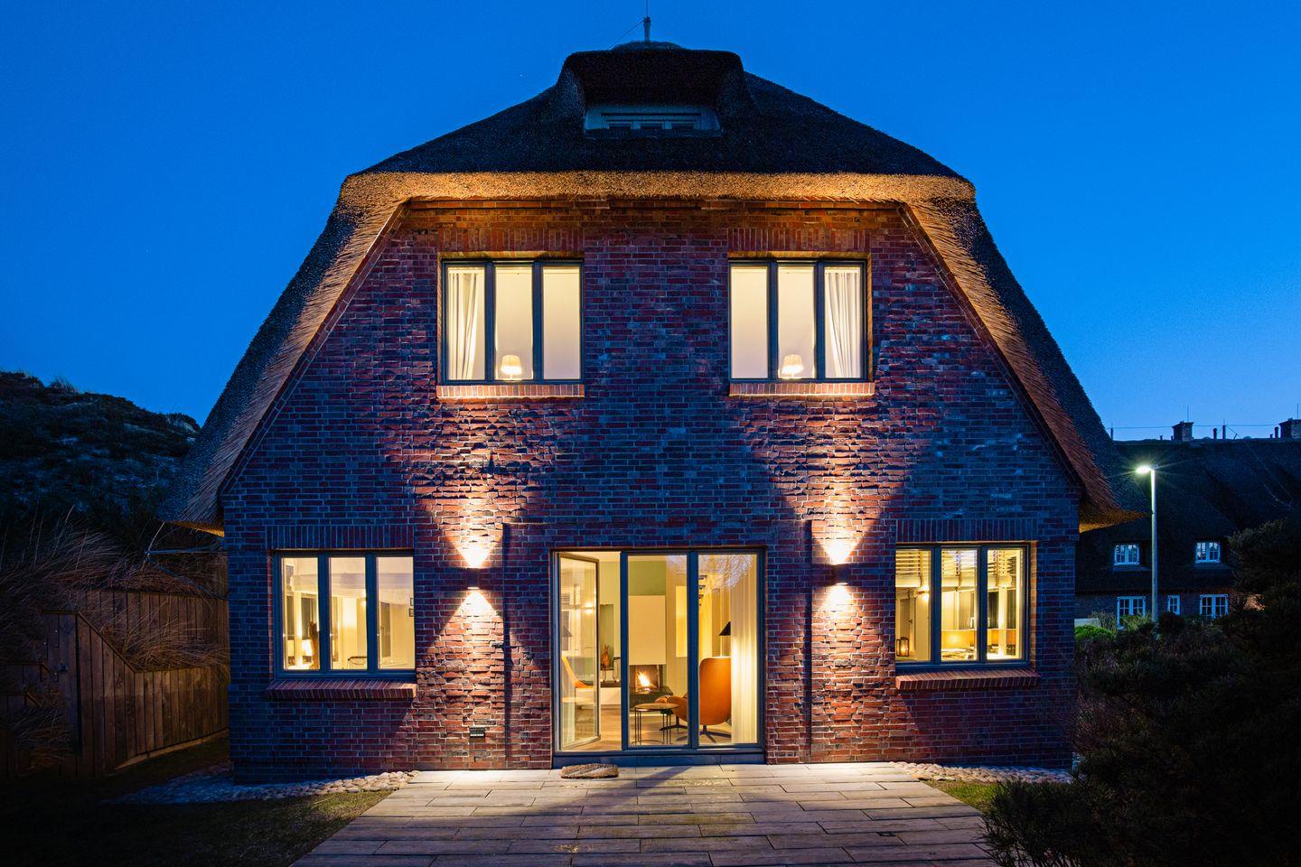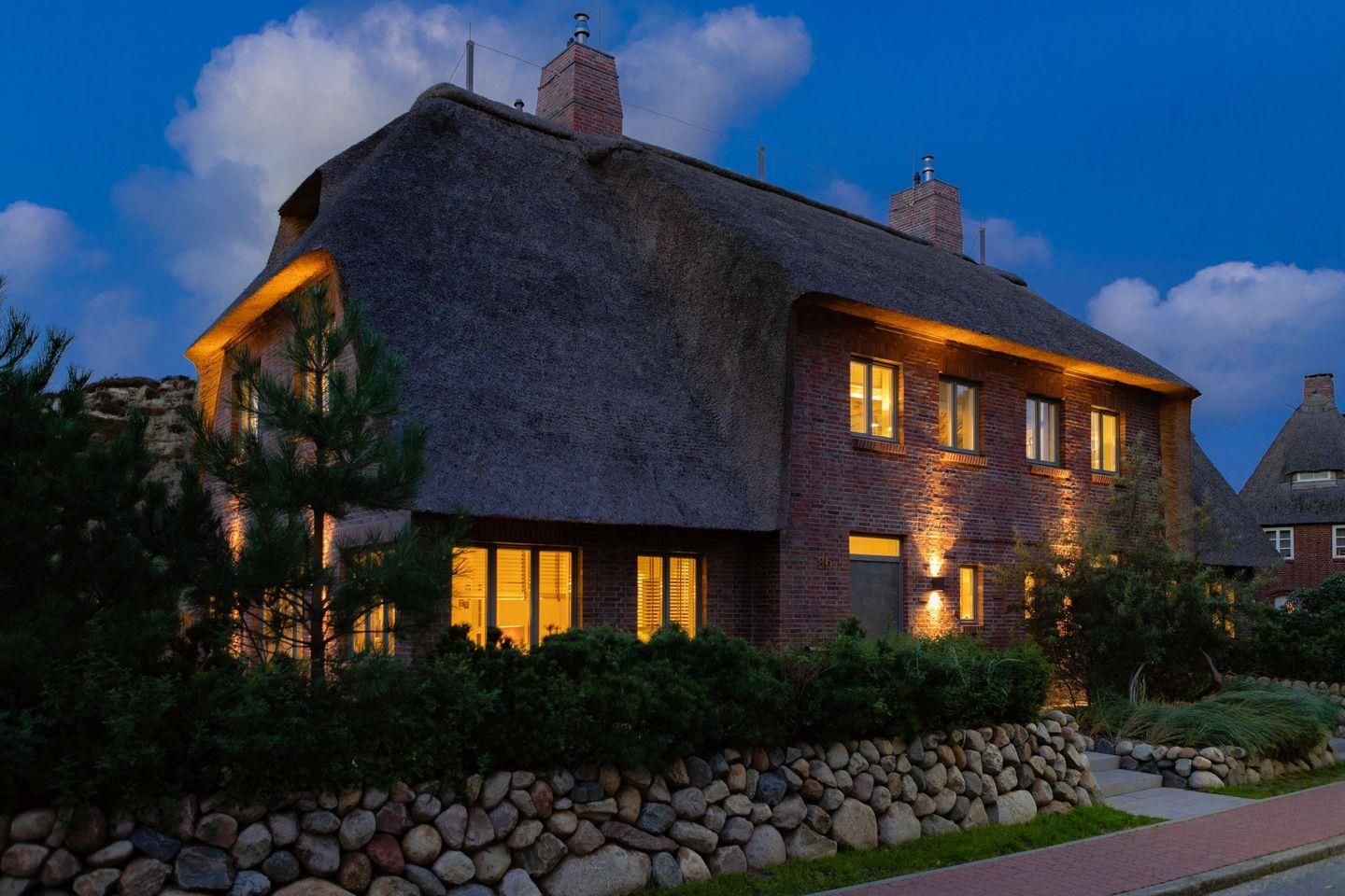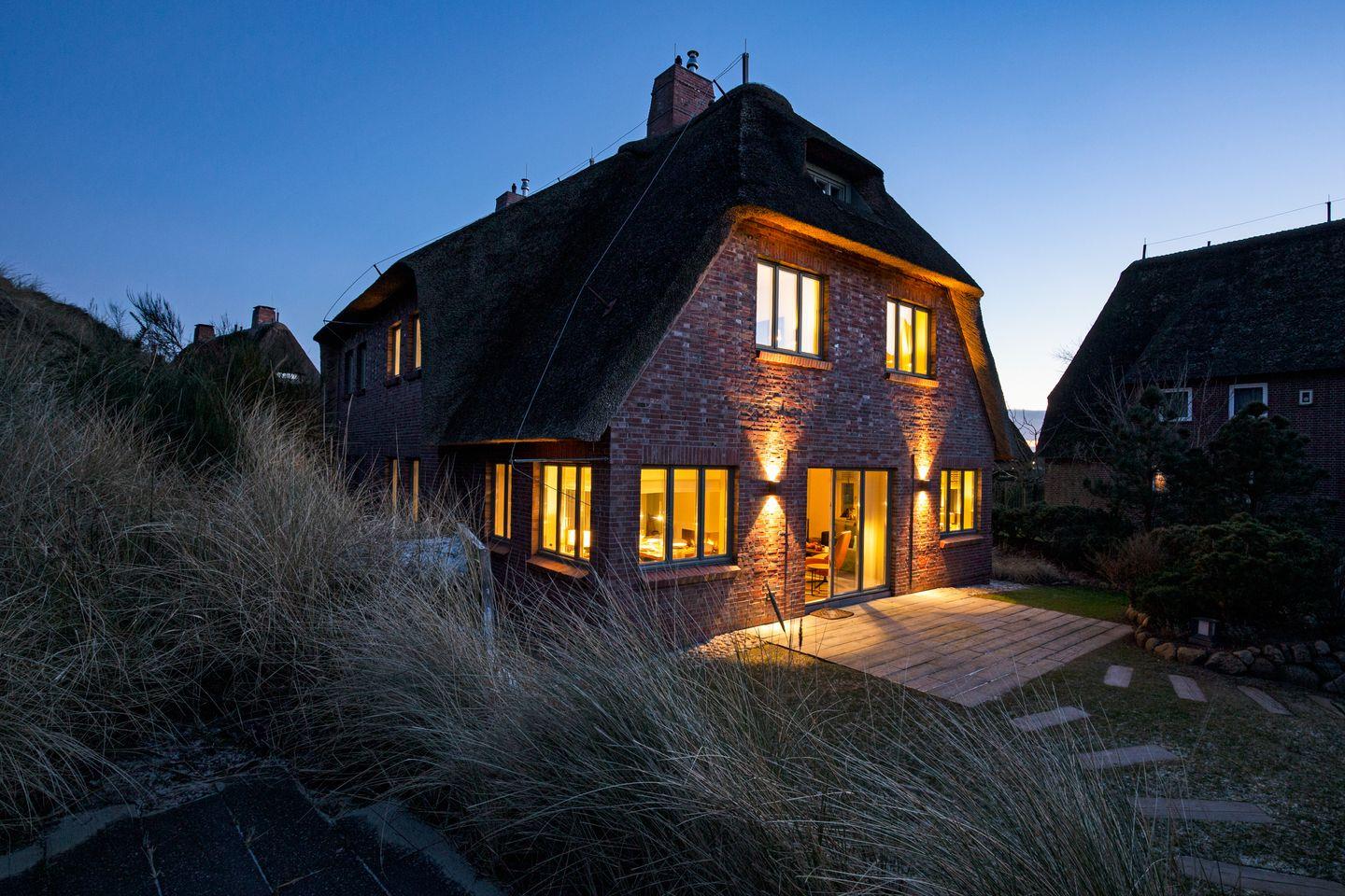 Luxuriöse Doppelhaushälfte unter Reet mit Wellness, Fitnessraum und Kinoraum in List, nahe Strand und Dünen.
