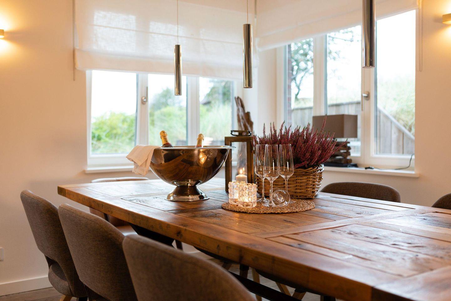 Die Doppelhaushälfte (220qm) unter Reet überzeugt durch hochwertige Materialien und eine stilvolle Einrichtung.