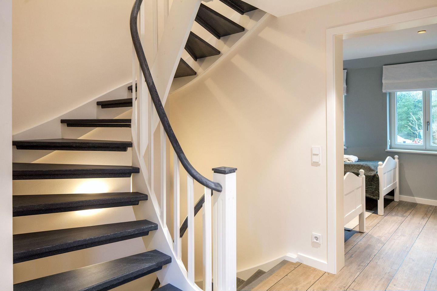 Die Schlafräume liegen in der ersten bzw. zweiten Etage (zwei mit Doppelbett, zwei mit zwei Einzelbetten).