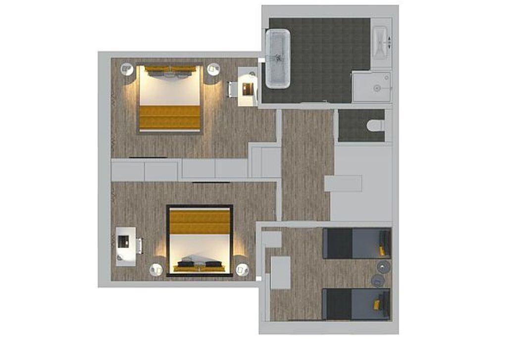 - 2 x Einzelbett (Offenes Fußteil)