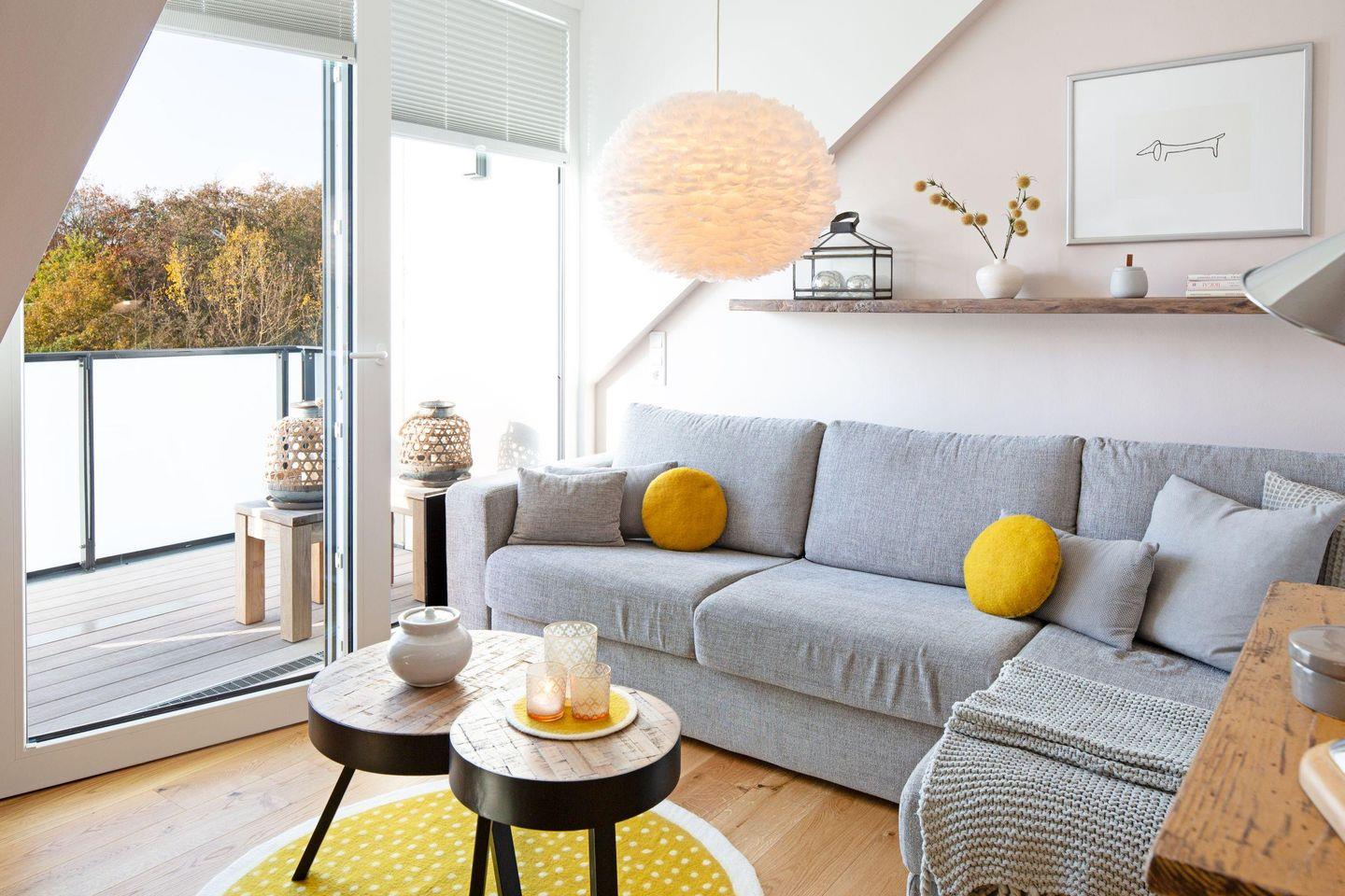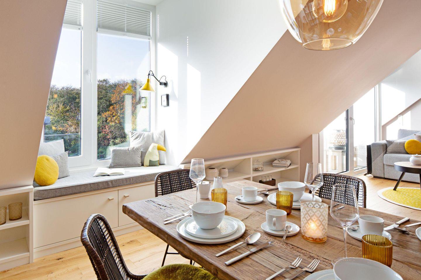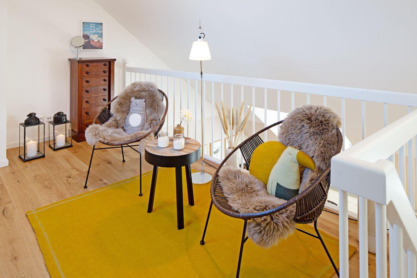 Das einladend gestaltete Appartement in der Nähe der Oststrandpromenade bietet auf zwei Ebenen reichlich Raum zur Erholung für bis zu vier Personen.