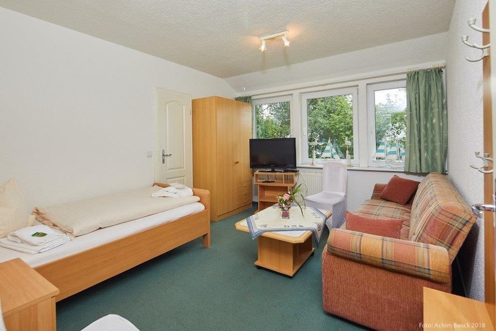 Einzelzimmer im Gästehaus Dorfstraße, fußläufig vom Hotel Seeblick und dem Einfelder See entfernt.