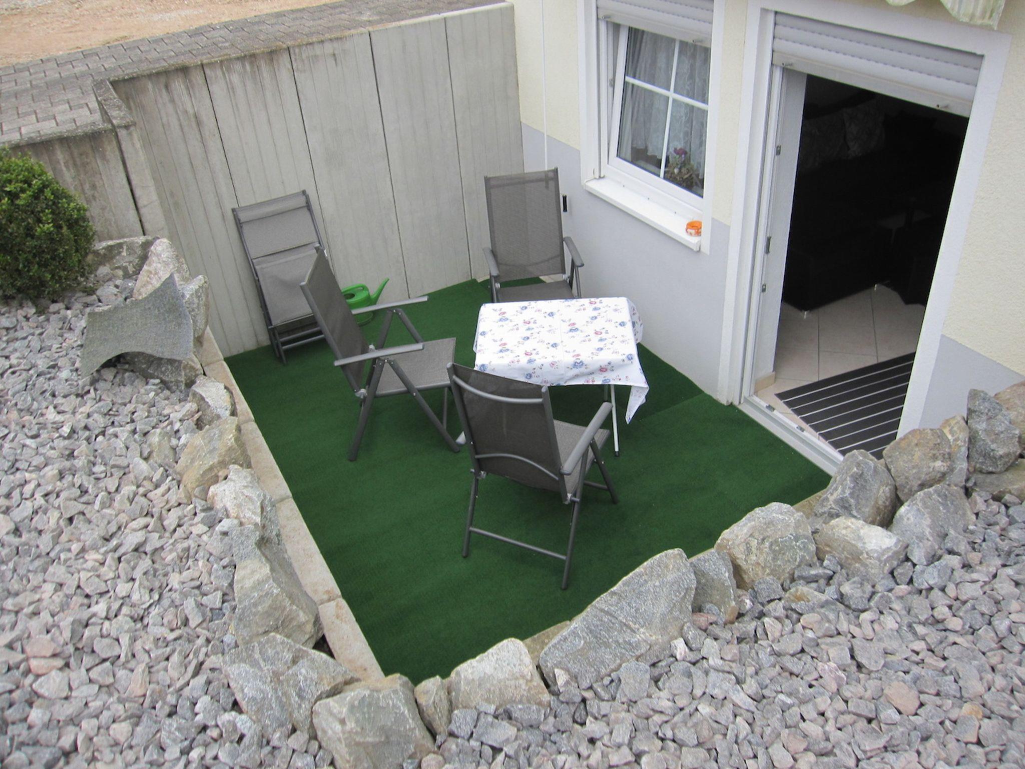 Der Raucherbereich befindet sich draußen unter dem Carport.