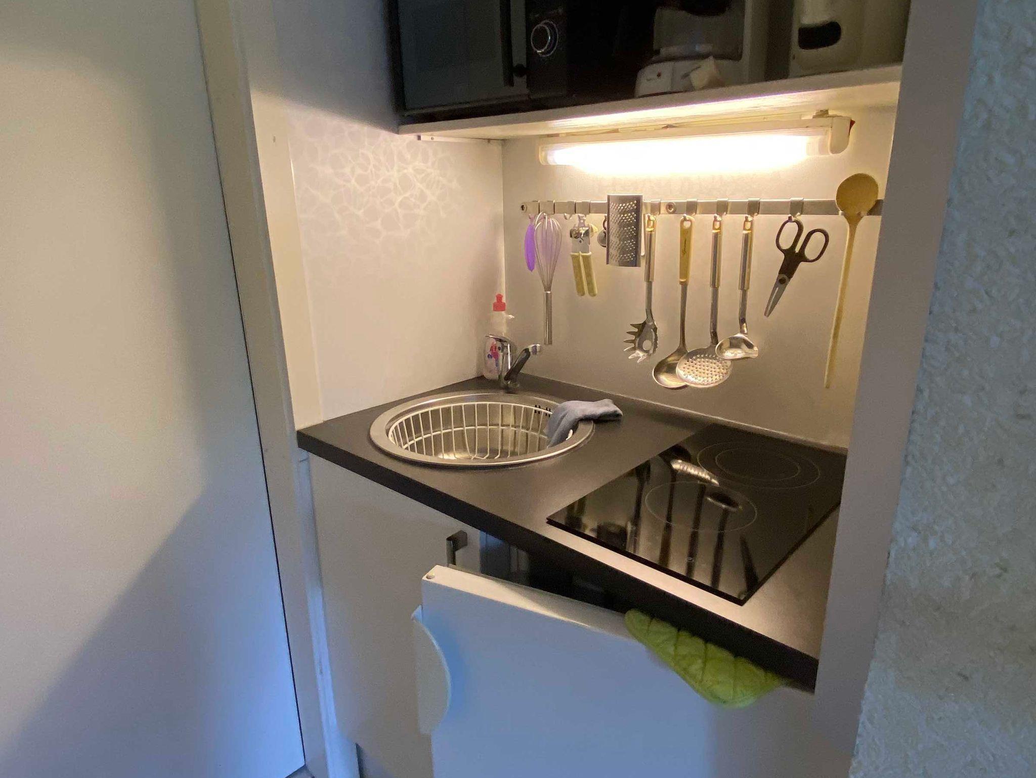 Die 30 qm große Ferienwohnung verfügt über ein Wohnzimmer mit elektrischen Kamin, einem Schlafzimmer, Bad und Pantryküche. Die eigene Terrasse lädt zum Grillen und Entspannen ein.