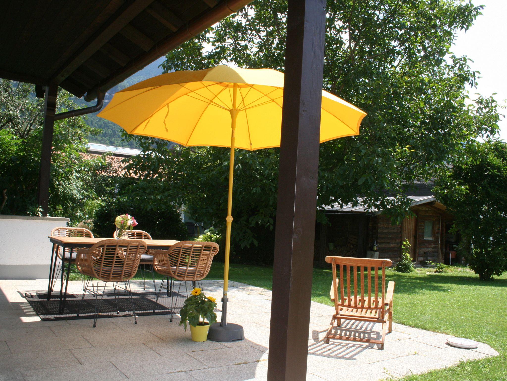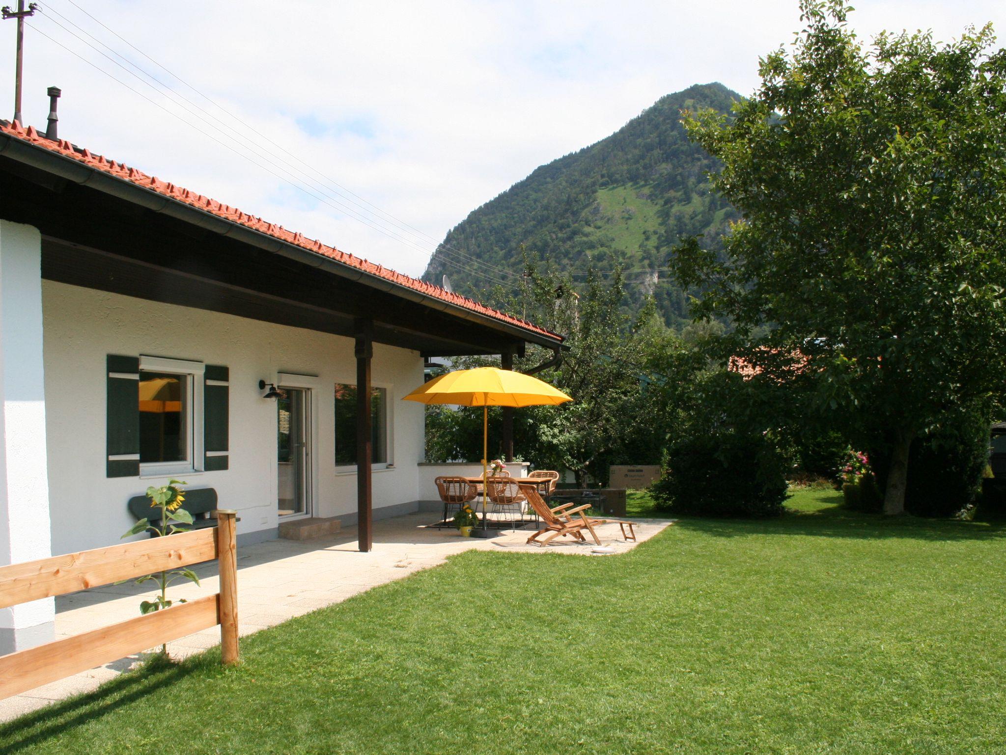 Unser Zweifamilienhaus liegt an einem ruhigen Privatweg. Die neu renovierte Ferienwohnung besteht aus dem gesamten unterem Geschoss, umbegen von einem großen Garten zur privaten Nutzung. Die zwei Stufen am Eingang ausgenommen, ist die Wohung bedingt barrierefrei. Autostellplatz und Strom für E-Bikes sind vorhanden. Die weitläufigen Radwege der Umgebung laden ein, das Achental zu erkunden. Der nächste Supermarkt ist zu Fuß in unter zwei Minuten zu erreichen. Der Bäcker öffnet um sieben Uhr.