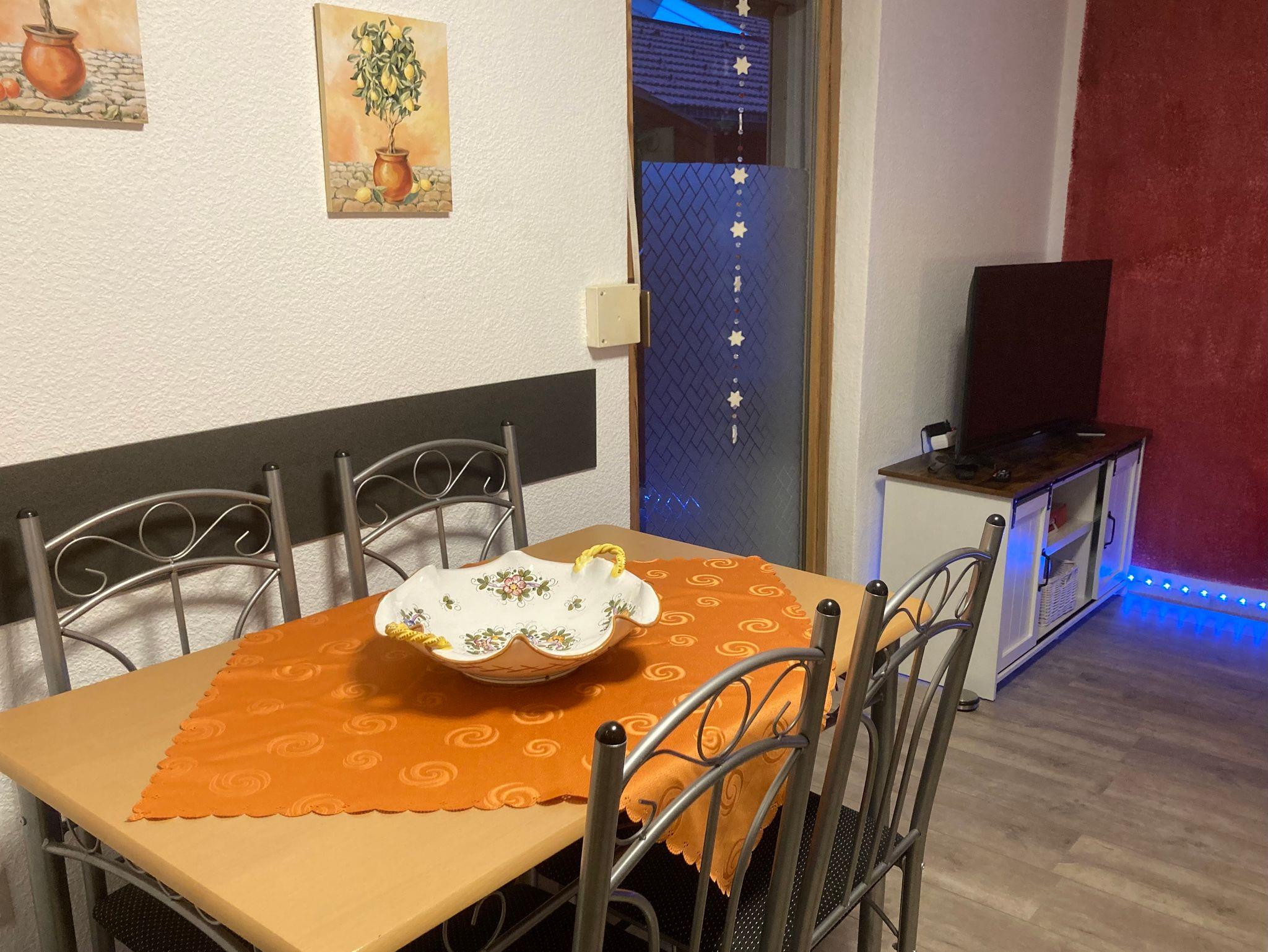 Eigener Eingang, großer Balkon. Parterre befindet sich der offene Wohnbereich mit modern eingerichteter Küche, Essbereich und einer gemütlichen Sitzecke .