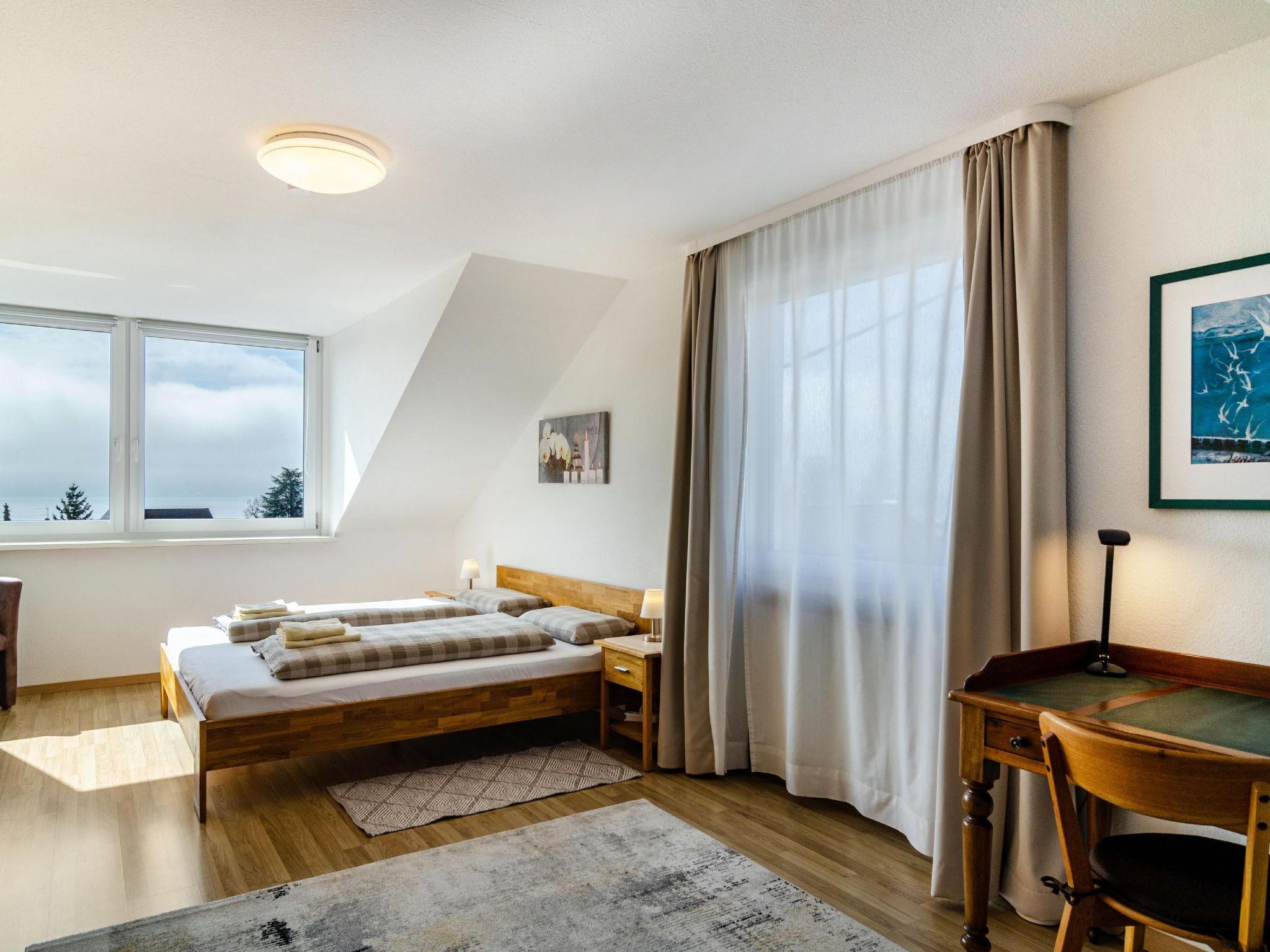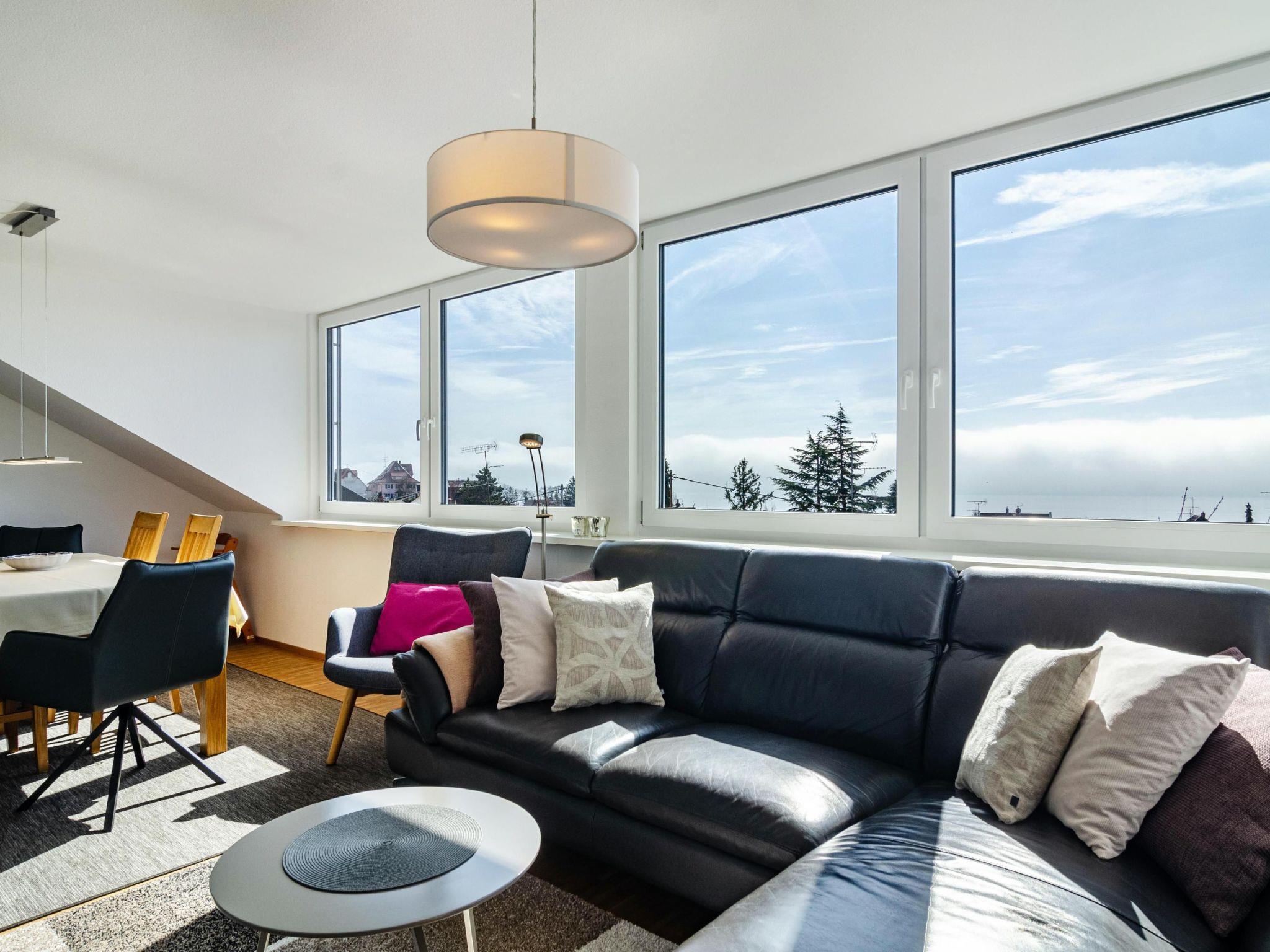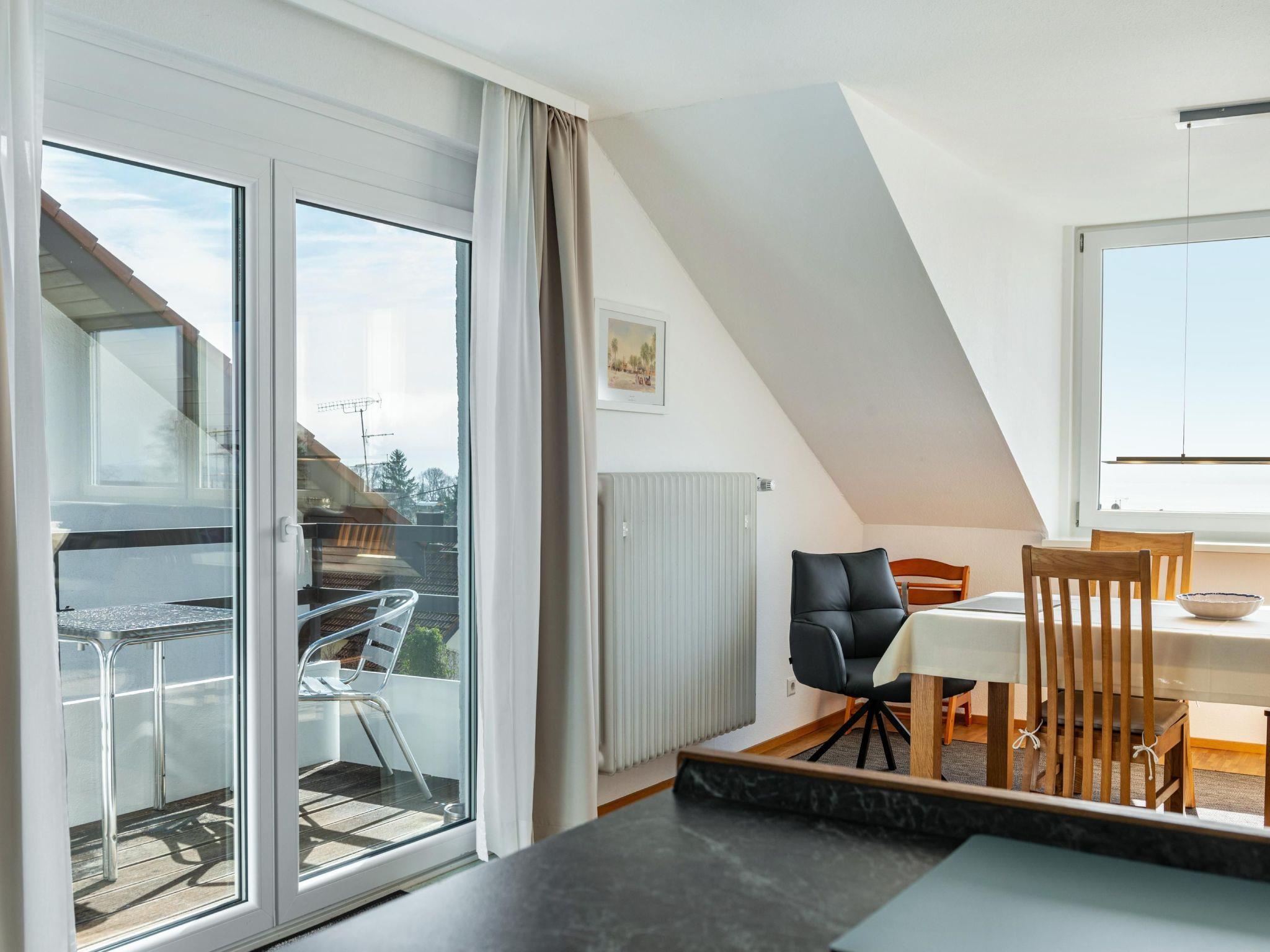 Ihre Ferienwohnung mit tollem Seeblick Hochwertige und helle Ferienwohnung im 1. Stock mit herrlichem See- und Alpenblick und kleinem Balkon.