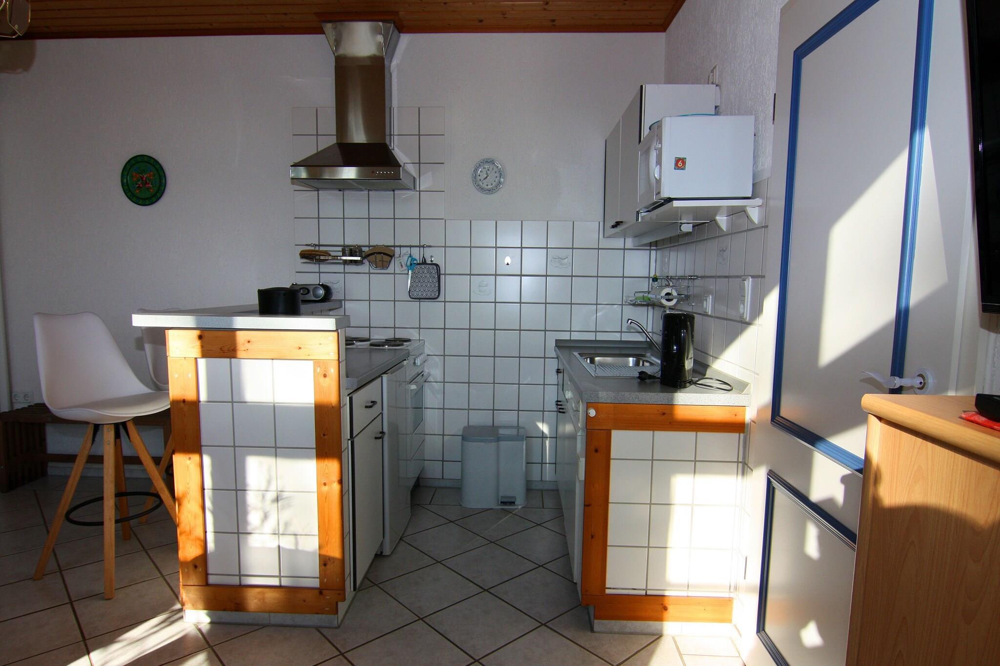 Parterre: (offene Küche(Kochplatte(4 Kochplatten, elektrisch), Toaster, Kaffeemaschine, Backofen, Mikrowelle, Spülmaschine, Kühlschrank(+ Gefrierfach)), Wohn/Esszimmer(TV(Satellit), Esstisch(2 Personen), Radio), Schlafzimmer(Doppelbett), Badezimmer(Dusche, Waschbecken, Toilette)) Heizung, Garten(Gemeinschaftliche Nutzung mit anderen Gästen), Gartenmöbel, Grill(Gemeinschaftliche Nutzung mit anderen Gästen), Parkplatz, Hochstuhl, Babybett (kostenpflichtig), Handtücher/Bettwäsche (extra Gebühr)