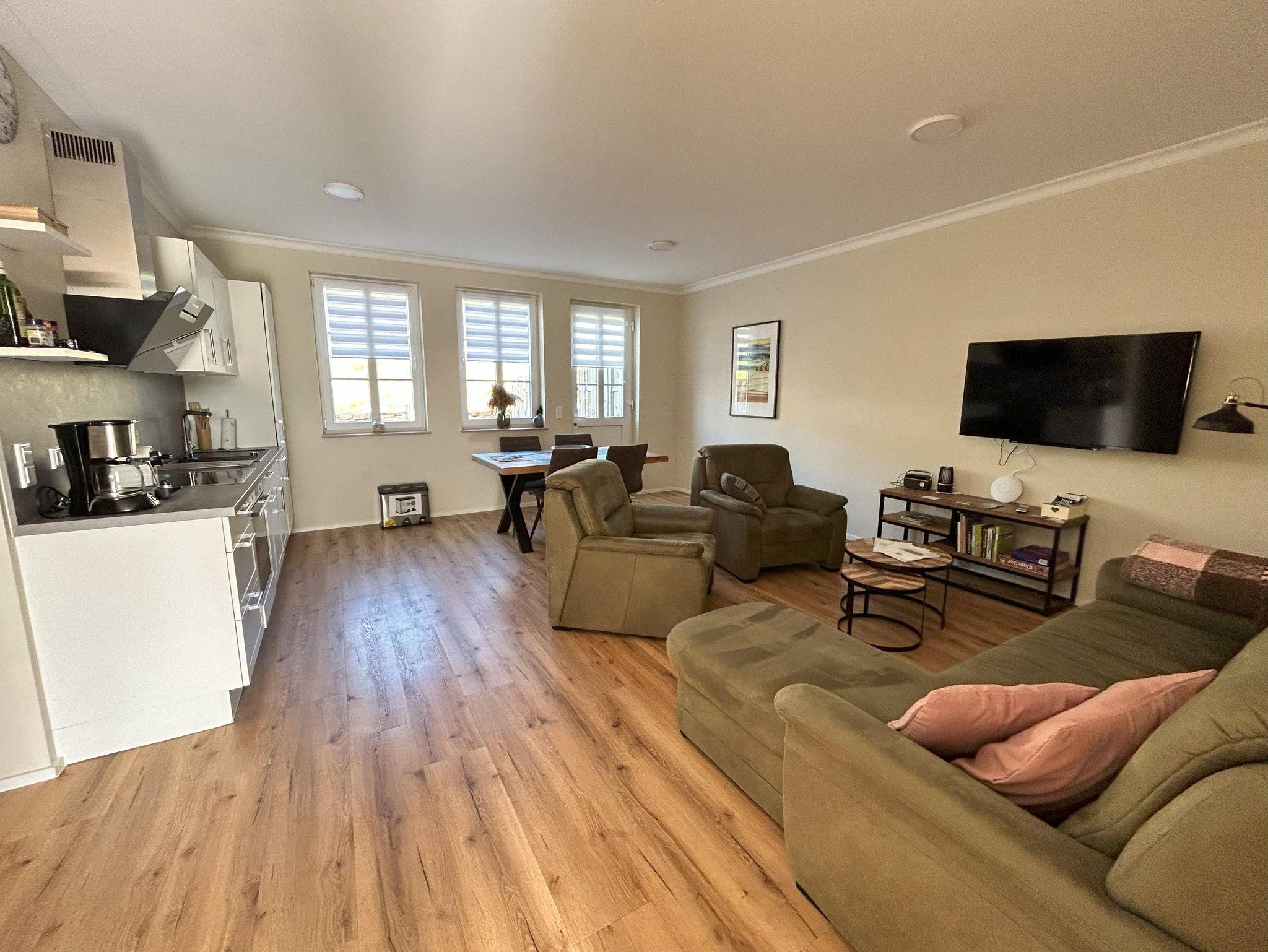 Die Küche ist ausgestattet mit Cerankochfeld, Dunstabzug, Backofen, Kühl- Gefrierkombination , Geschirrspüler, Kaffeemaschine, Wasserkocher und Toaster.