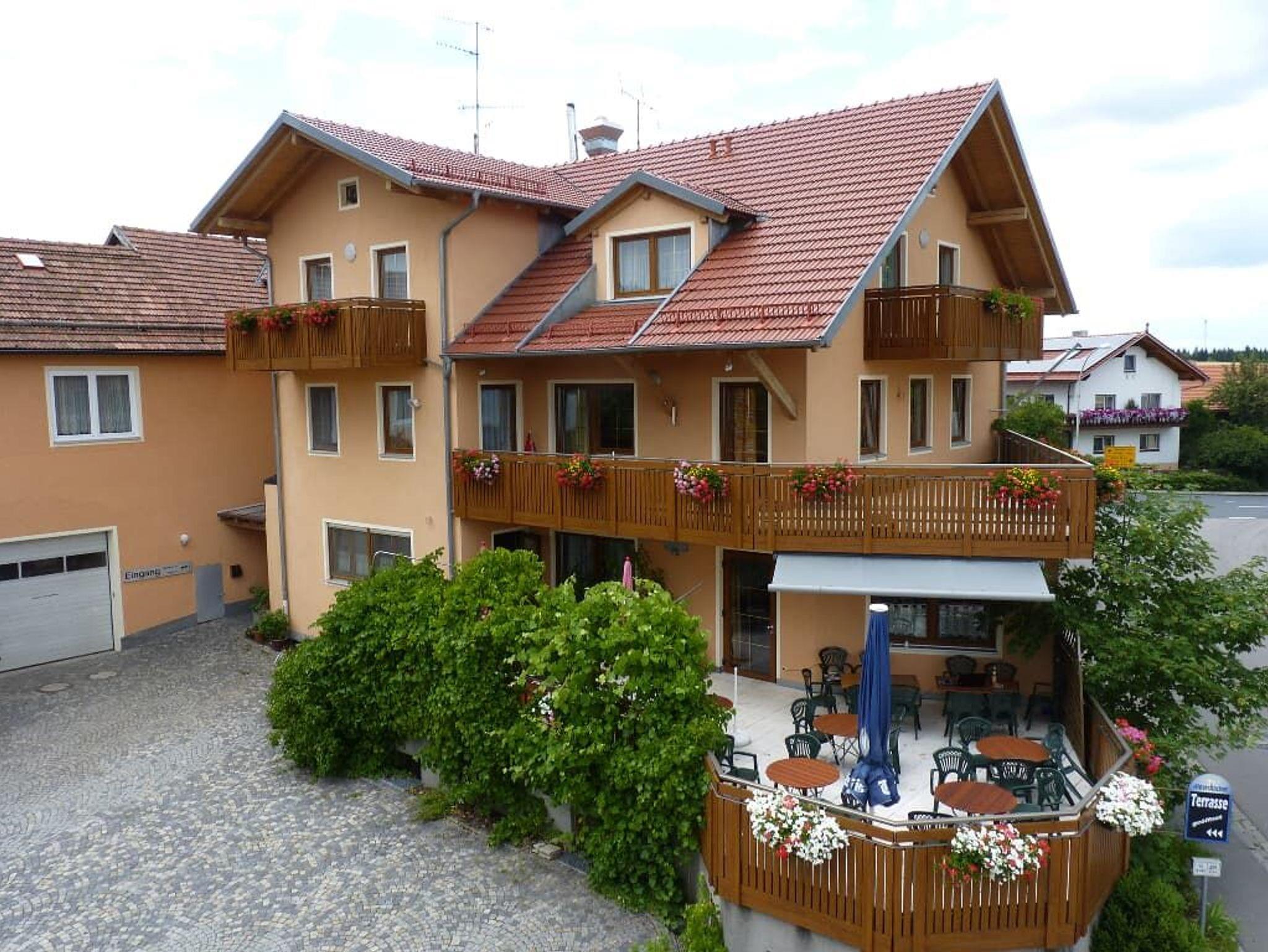 Erholen Sie sich vom Alltag! Unser traditionsreicher Familienbetrieb hat seinen Ursprung im 19. Jahrhundert und wurde durch die Generationen hindurch immer weiter zu einem modernen Gastronomie- und Beherbergungsbetrieb aufgebaut. Verschiedene Gasträume stehen für die vielfältigsten Veranstaltungen, wie Familienfeiern, Seminare, Versammlungen, Hochzeitsfeiern, Volkstanzveranstaltungen, Heimatabende u.a. bereit. Veranstaltungen wie Kabarett-Abend, Tanzabende, Theatervorführungen usw. finden Sie aktuell im Internet. Eine große, moderne Küche verwöhnt Sie mit allerlei bayerischen und nationalen Spezialitäten, immer frisch aus der eigenen Metzgerei mit ausgezeichneten Fleisch- und Wurstwaren. Die Gästezimmer sind mit TV, Du, WC, Föhn, Safe und Balkon ausgestattet. Weiterhin stehen für Sie ein Hallenschwimmbad, Sauna, Biergarten und freies WLAN im Haus zur Verfügung. Für Tagungen und Seminare stehen u.a. Beamer und Großleinwände bereit. Erweitert wird das Angebot durch eine Massage-Praxis im Ort, die auch auf Wunsch ins Haus kommt. Unser Gasthof befindet sich seit über 120 Jahren in Familienbesitz. Neben dem Gasthof waren früher die Landwirtschafft und die Metzgerei ein weiteres Standbein in dem Anwesen. Wir haben unseren Gasthof neu angebaut. Im Mittelpunkt steht eine neue große Küche. Eine große Terrasse an der Südseite unseres Gasthofes lädt ein zum gemütlichen Aufenthalt.