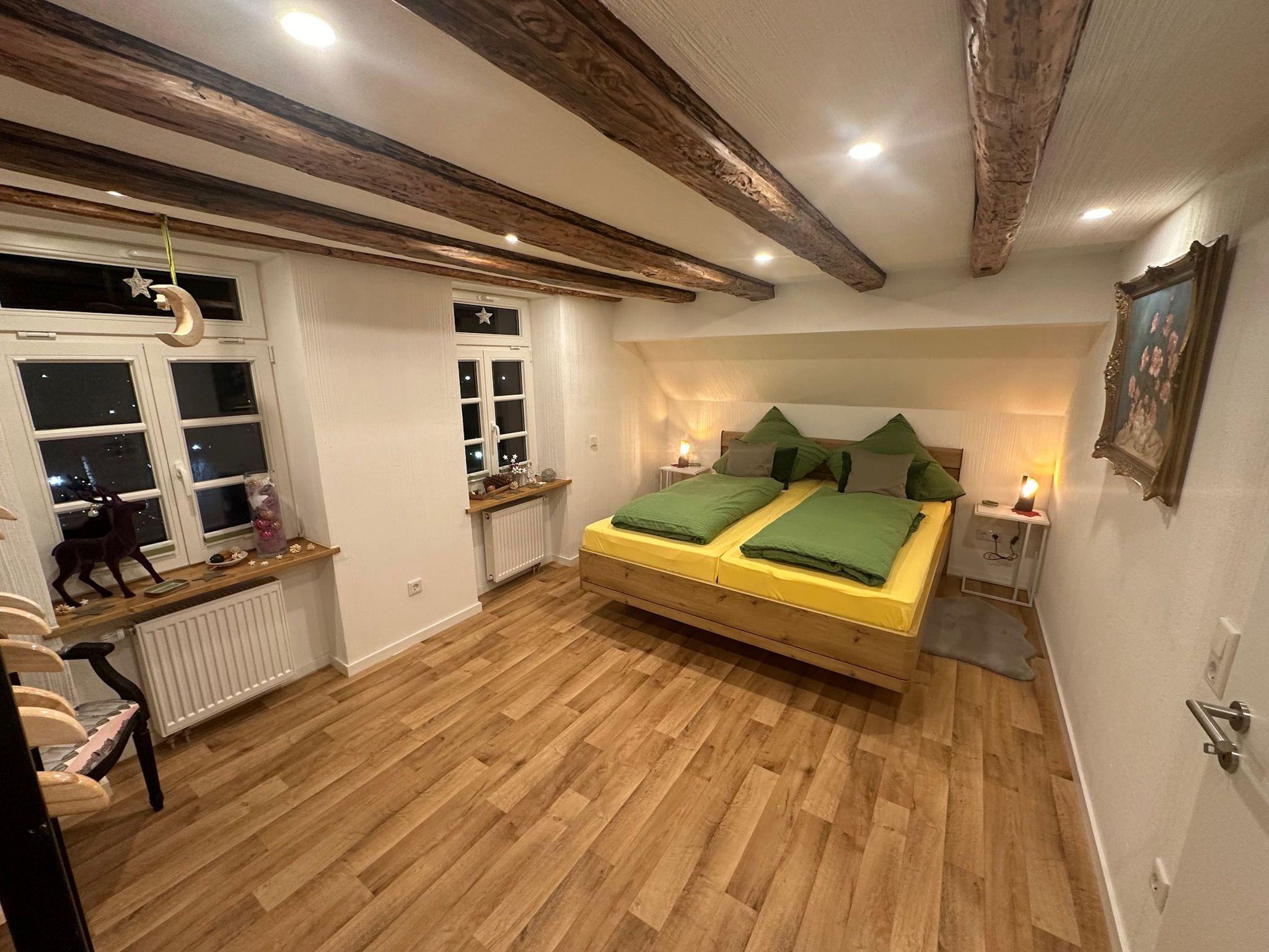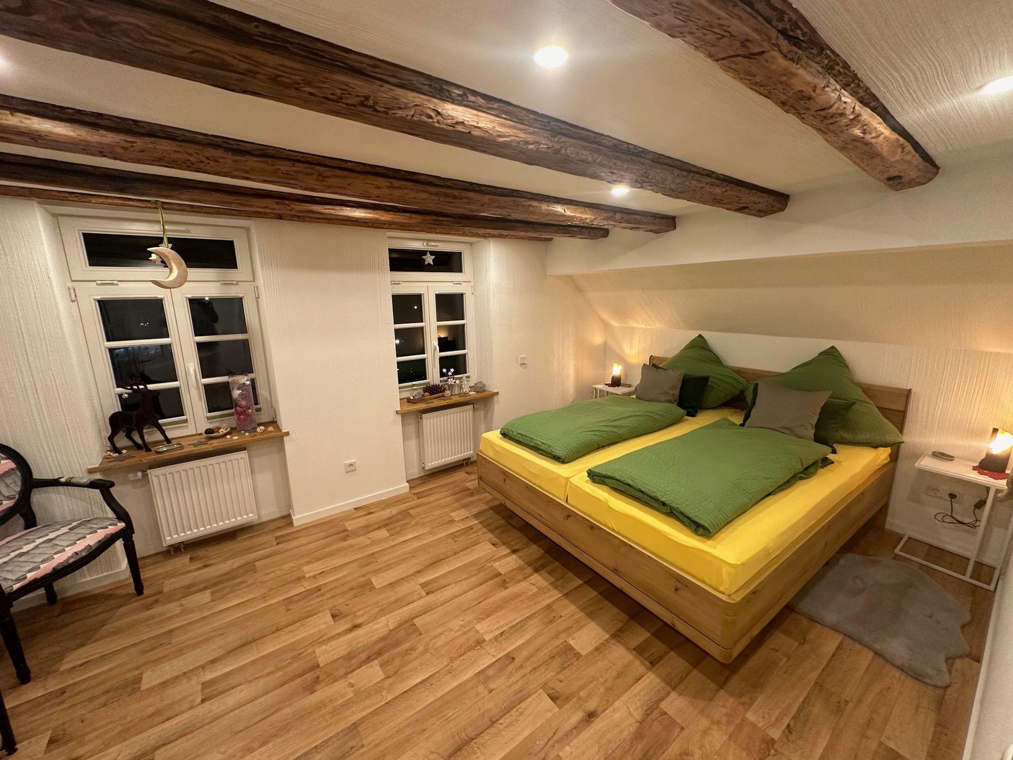 Sie finden in unserem schönen, 2024 neu renovierten Haus, das vom Bäcker Friedrich Wilhelm Heist 1838 aus Sandstein und Holzfachwerk erbaut wurde, zwei zentral gelegene Ferienwohnungen nach heutigem Standard und Komfort, einen Außenbereich mit Schuppen und 2 Parkplätzen. (E-Bike und E-Auto Ladestation, baldigem Internet und TV-Anschluss)