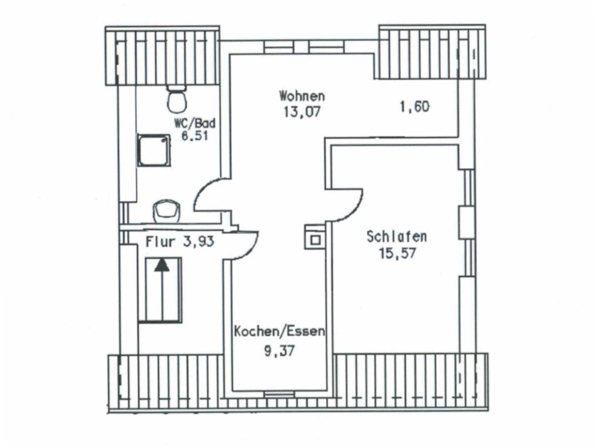 Ein kleiner Balkon, der unteren Wohnung zugehörig, lädt zum morgendlichen Tee oder Kaffee sowie zu einer abendlichen Entspannung in der Abendsonne ein.