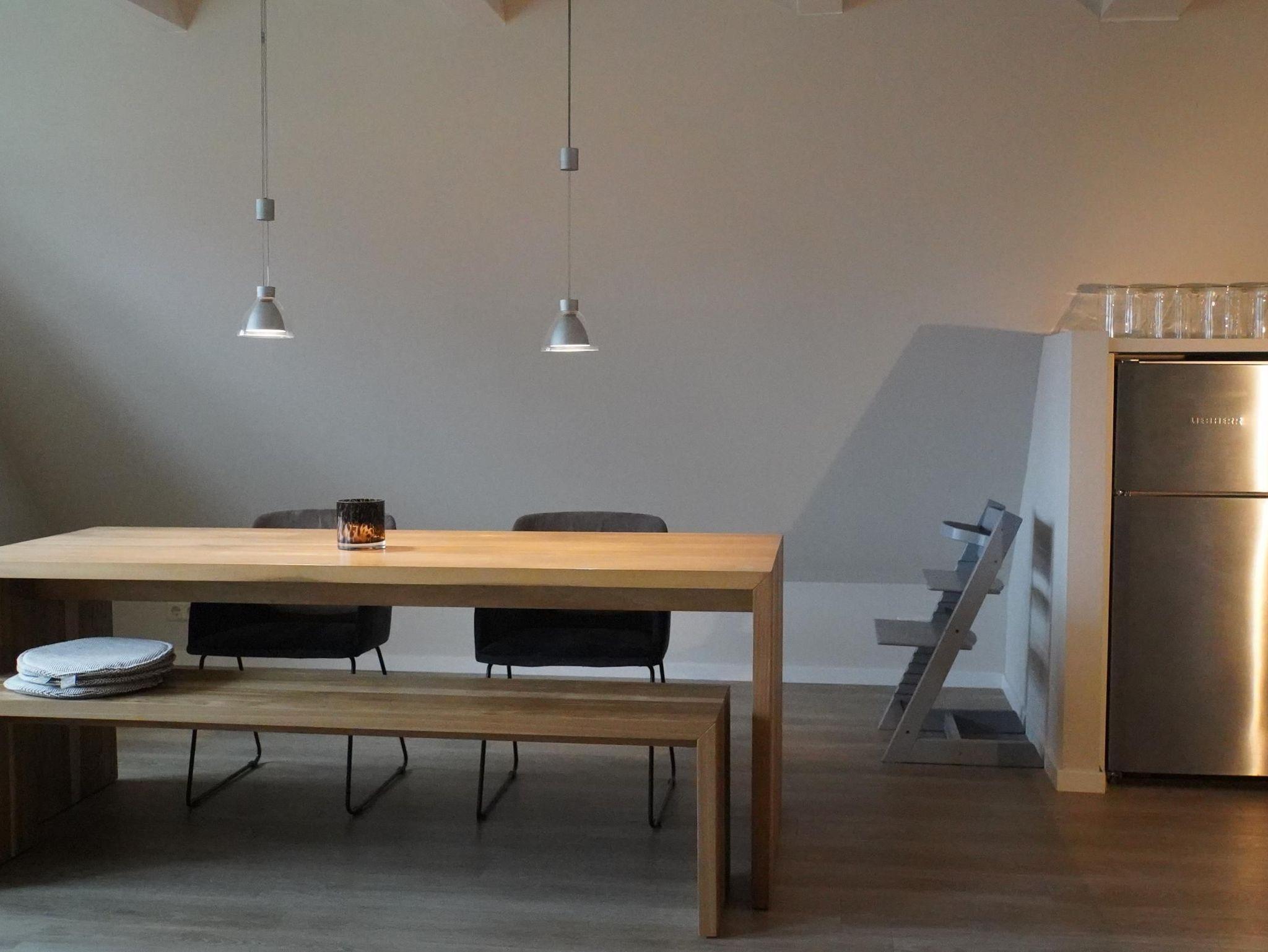 Die Wohnung ist modern gehalten, während Holzsprossenfenster und einzelne Elemente dir dennoch das Gefühl geben, dass du dich in einem über 200 Jahre alten Reetdachhaus aufhältst. Diese Verbindung vom traditionellen Friesenhaus und moderner Ausstattung verleiht der Wohnung eine besondere Persönlichkeit und macht sie zu einem Ort, der Komfort und Gemütlichkeit vereint.Über den Flur, der durch eine große Glastür vom Wohnraum abgetrennt ist, gelangst du zu den beiden Schlafzimmern. Das erste Schlafzimmer verfügt über ein 1,60 Meter breites Bett, während das zweite Zimmer mit zwei Einzelbetten ausgestattet ist. Beide Zimmer sind mit praktischen Einbauschränken versehen. Ein gemeinsames Badezimmer mit Dusche und Badewanne ist ebenso vom Flur aus erreichbar.Der große Ess- und Wohnraum mit einer voll ausgestatteten Küche bietet viel Platz und Komfort zum gemeinsamn Kochen und Essen.