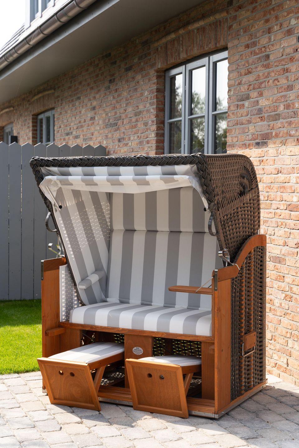 Luxuriöse Doppelhaushälfte auf Föhr mit Sauna, Kamin, Garten und Strandkorb für erholsame Urlaubstage.