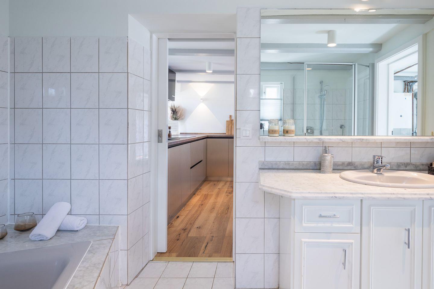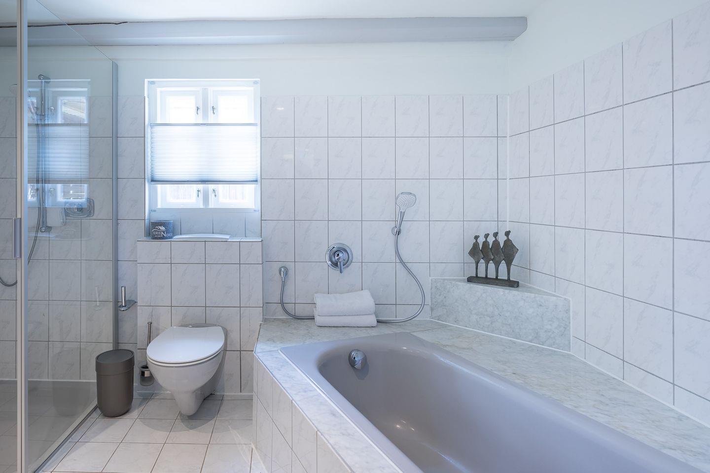 Neben einem separaten Gäste-WC erwartet Sie ein geräumiges Badezimmer mit Badewanne und Dusche. Auch eine Waschmaschine und ein Trockner stehen Ihnen zur alleinigen Nutzung zur Verfügung.