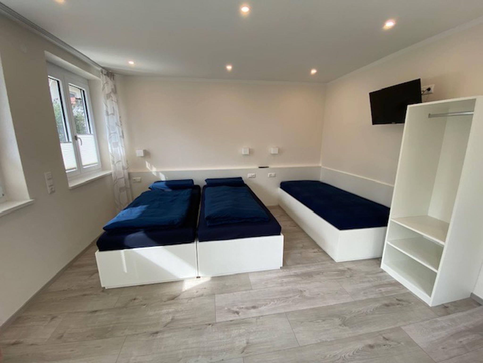 Wohn-/Schlafzimmer: ein Doppelbett mit der Möglichkeit zu zwei Einzelbetten und zusätzlich ein Einzelbett,