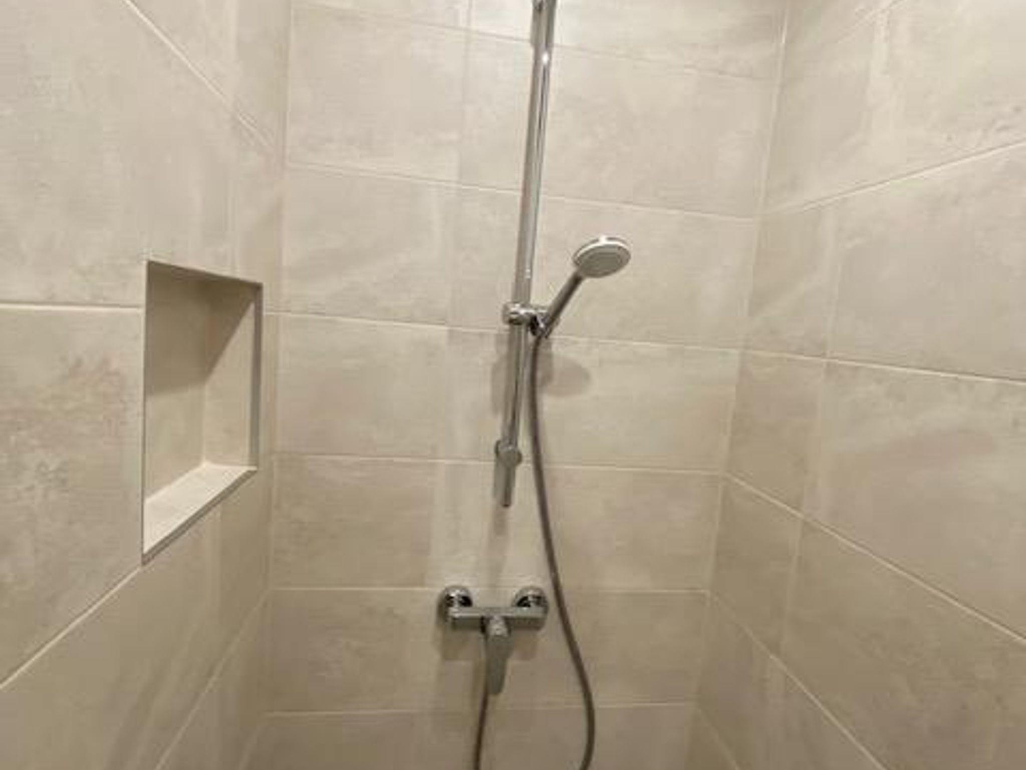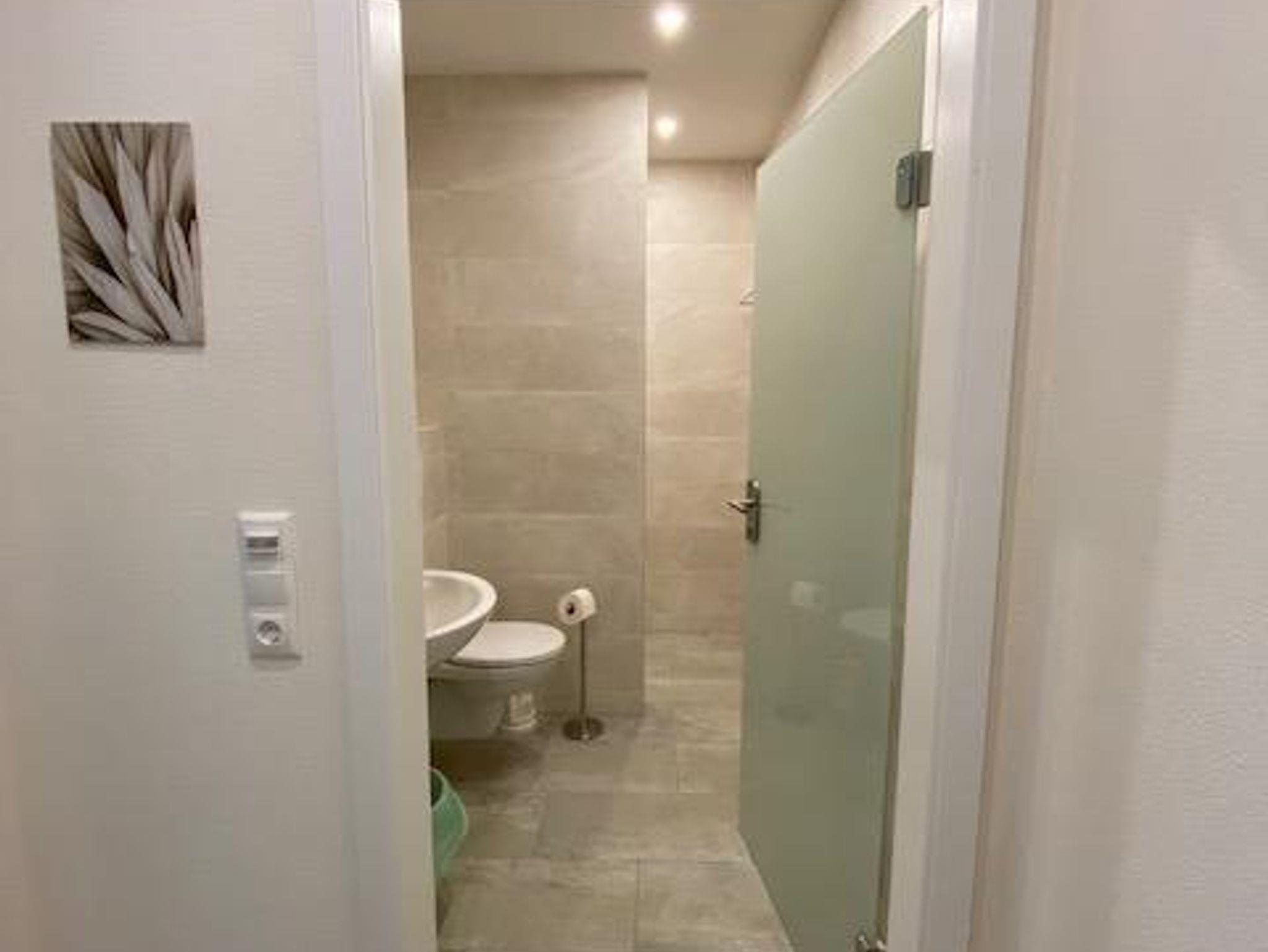 Bad mit Dusche und WC, Fön, Spiegelschrank