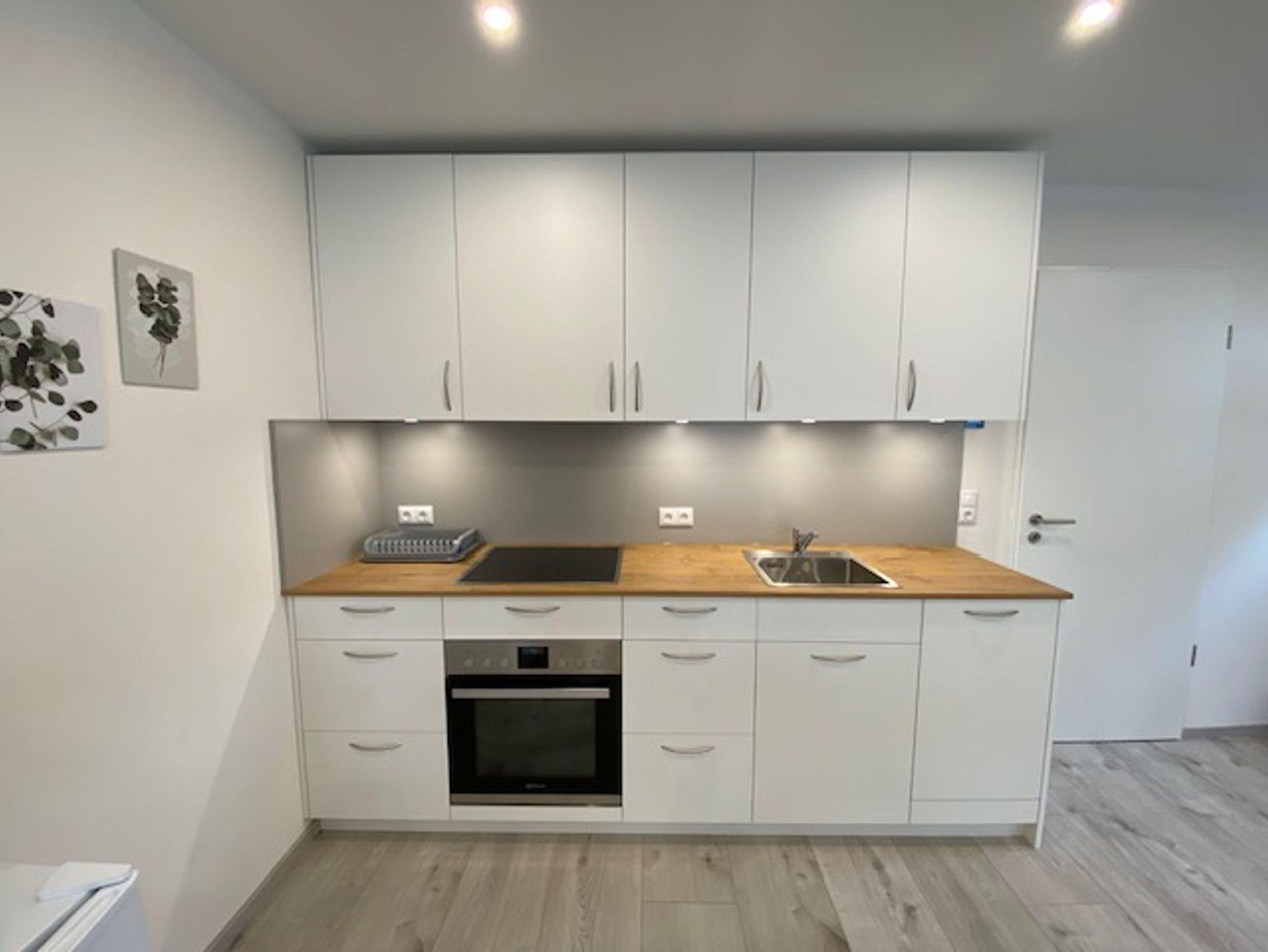 - gut ausgestattete Küche mit Backofen, Kochfeld, Dunstabzug, Spülmaschine, Kaffeemaschine, Kühlschrank, Geschirr, Töpfe, Besteck