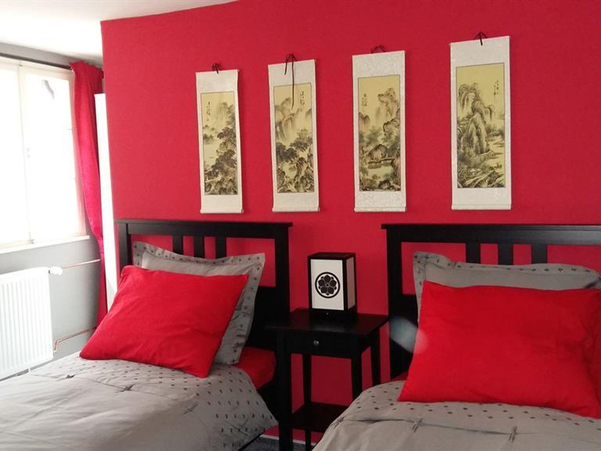 Das fernöstlich inspirierte Zimmer 'Shanghai' hat zwei Einzelbetten, die man auf Wunsch auch zusammen stellen kann. Ein Sessel und ein kleiner Tisch vervollständigen das Bild. Das Zimmer verfügt über ein eigenes Bad mit Dusche, WC und Fön.