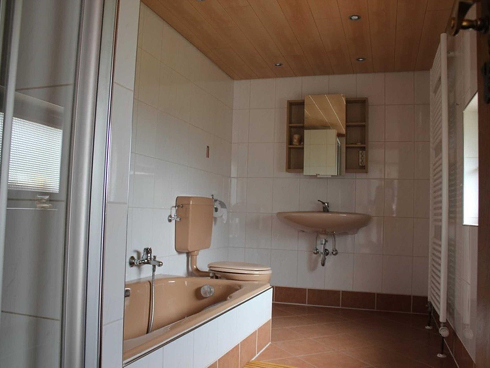 Bad mit Dusche, Badewanne, Waschbecken und WC