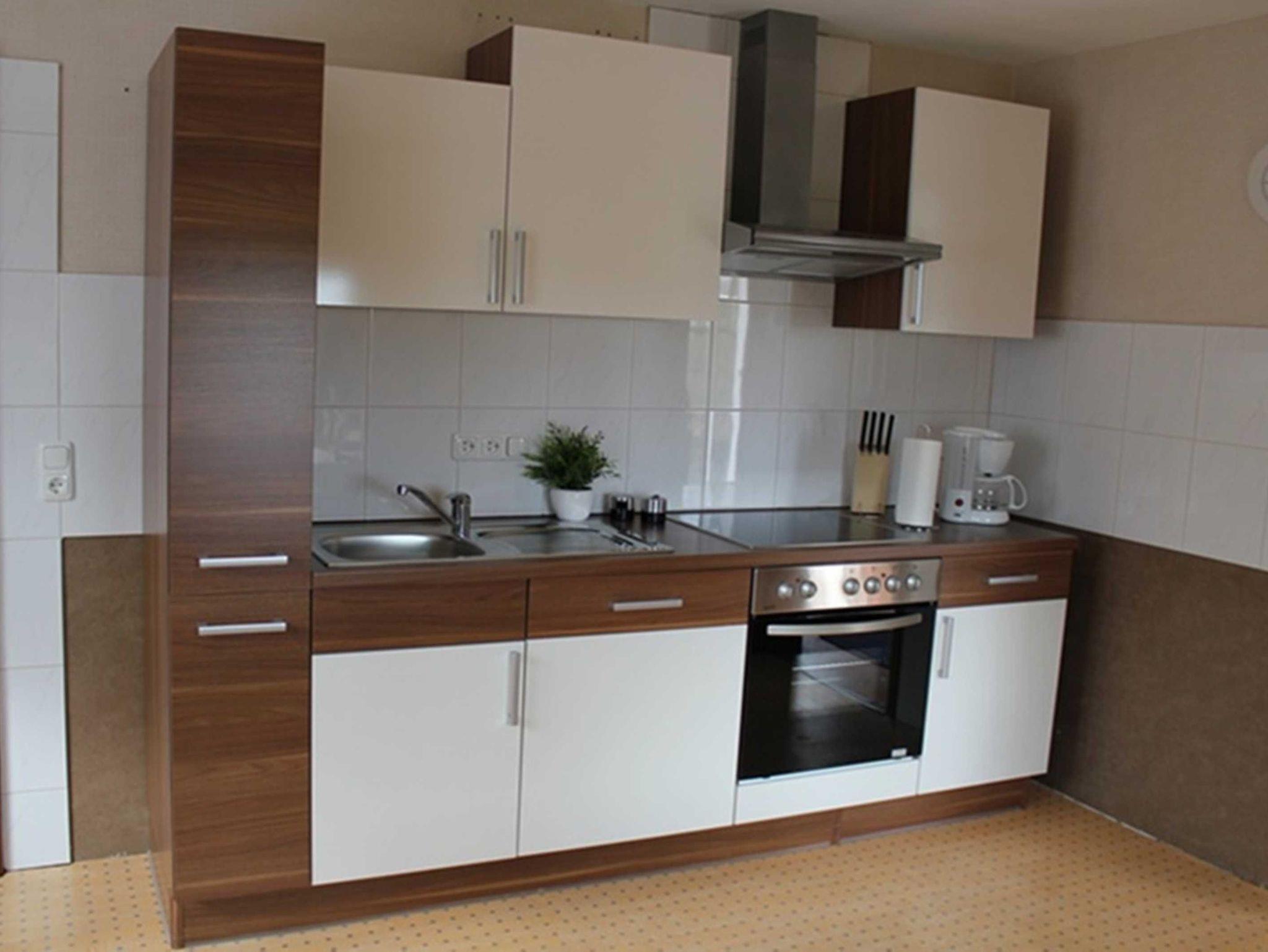 Küche mit Spülmaschine, Backofen, Mikrowelle,, Kühlschrank mit Gefrierfach, Filterkaffeemaschine und zusätzlichem Essplatz für 4 Personen