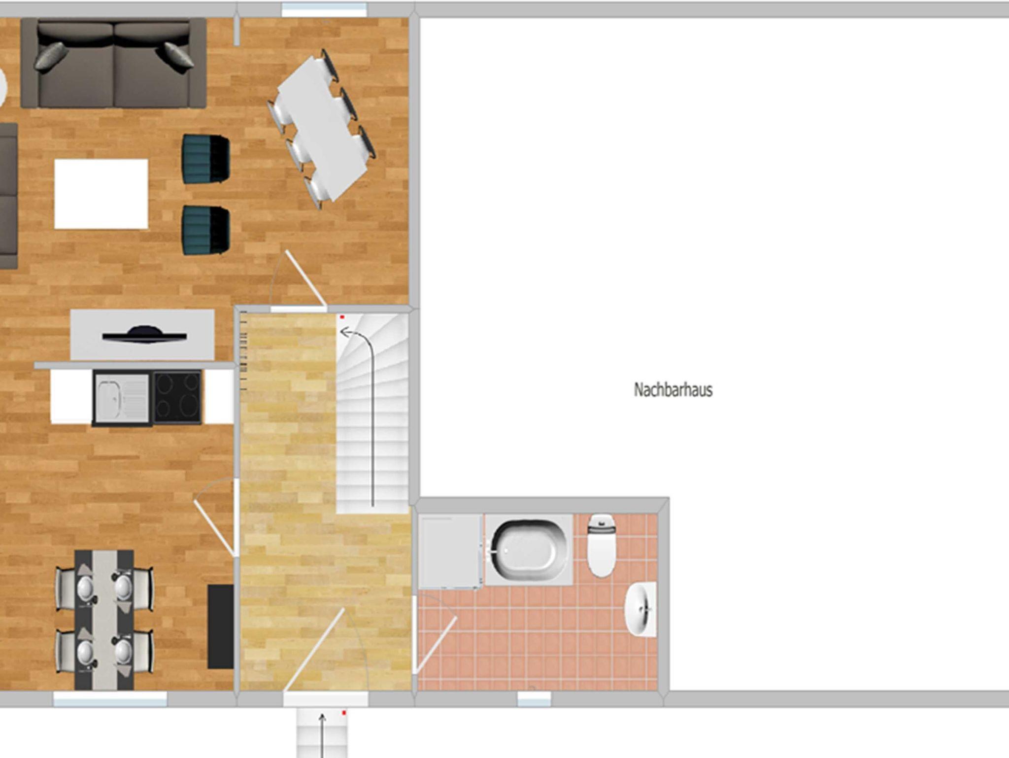 Modern eingerichtete Doppelhaushälfte (ca. 85 m²) mit separatem Eingang und einem kleinen Gartenbereich, der zum Relaxen und Grillen genutzt werden kann.