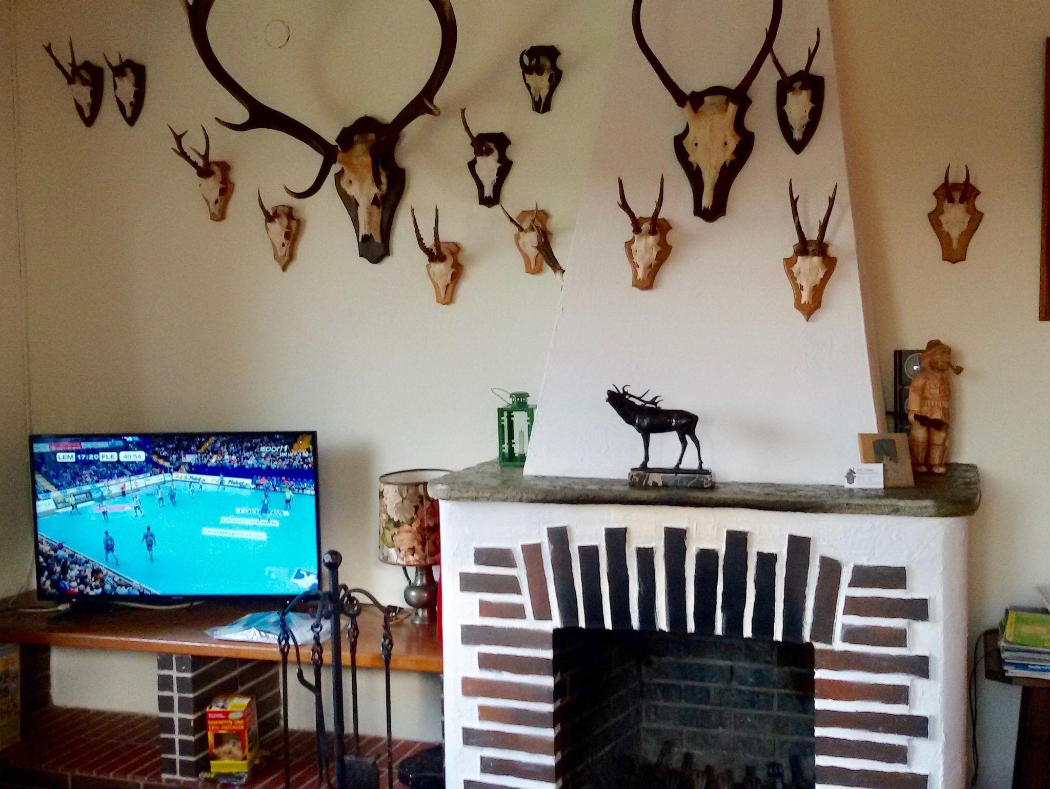 Wohn- und Eßzimmer mit offenem Kamin und SAT-TV. Dort befindet sich auch der Ausgang zu einer der beiden Terrassen; von der Südwest-Terrasse aus genießen Sie einen fantastischen Blick in das wunderschöne Rurtal und haben abends einen herrlichen Blick in den klaren Sternenhimmel. Zu einem sonnigen Frühstück eignet sich eine große, nach Osten ausgerichtete Terrasse.