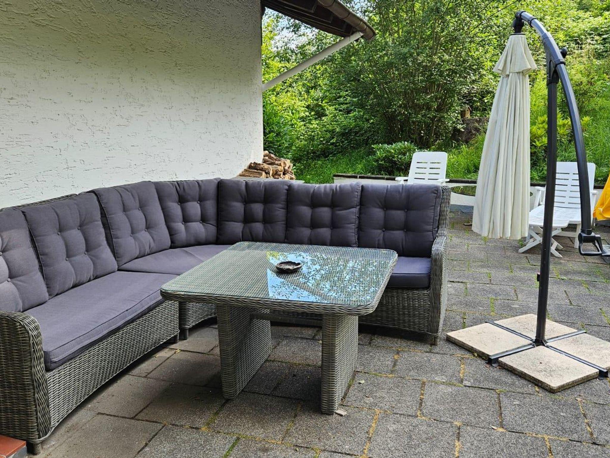Zwei Außenterrassen / Gartenmöbel und Holzkohle-Grill vorhanden.