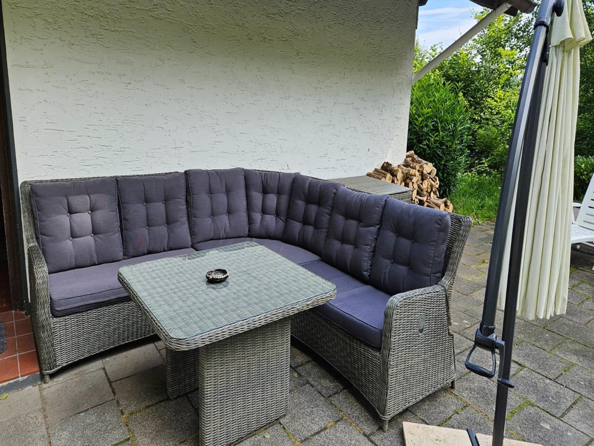 Zwei Außenterrassen / Gartenmöbel, Lounge-Ecke im Hof und Holzkohle-Grill vorhanden.