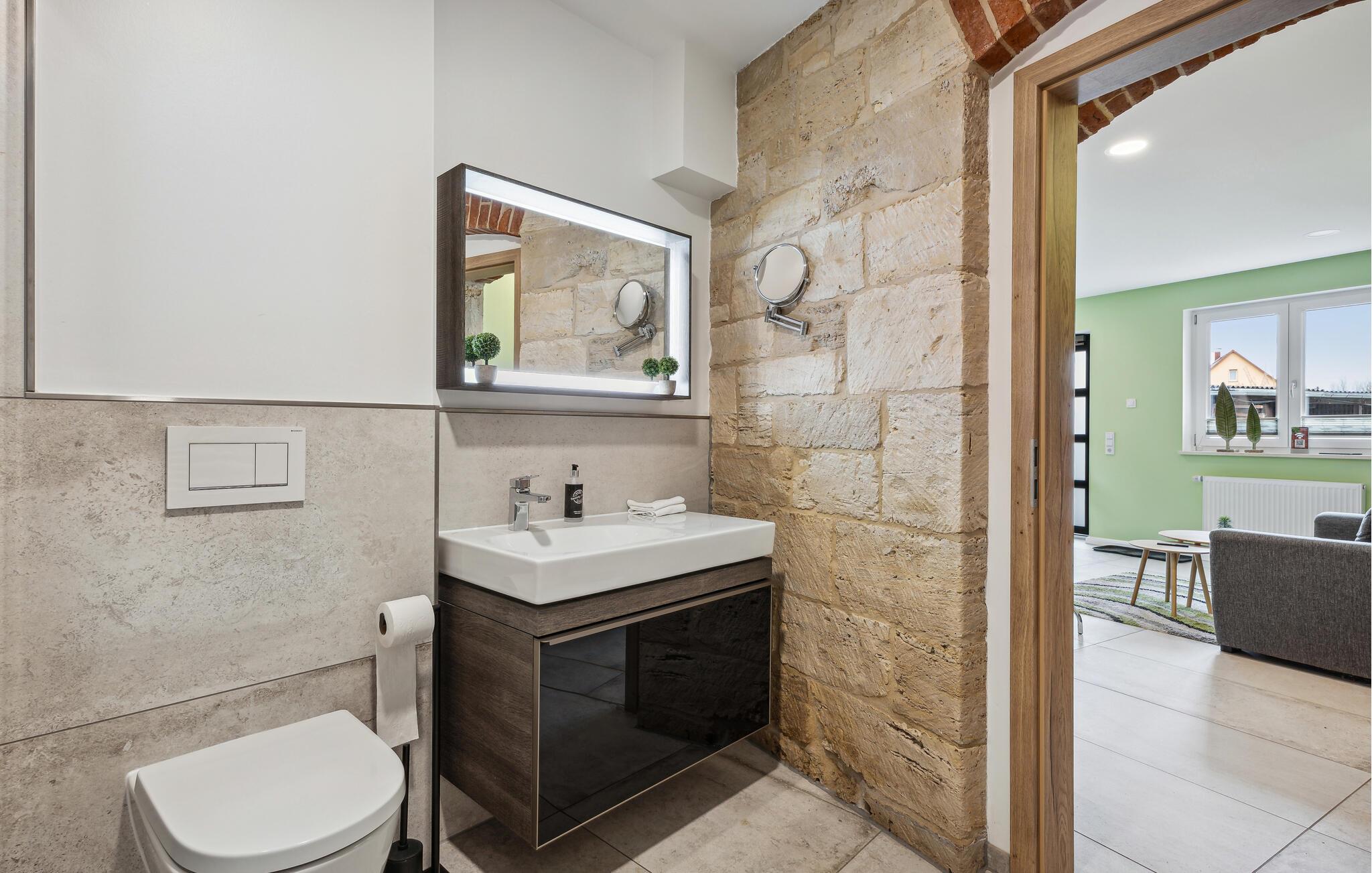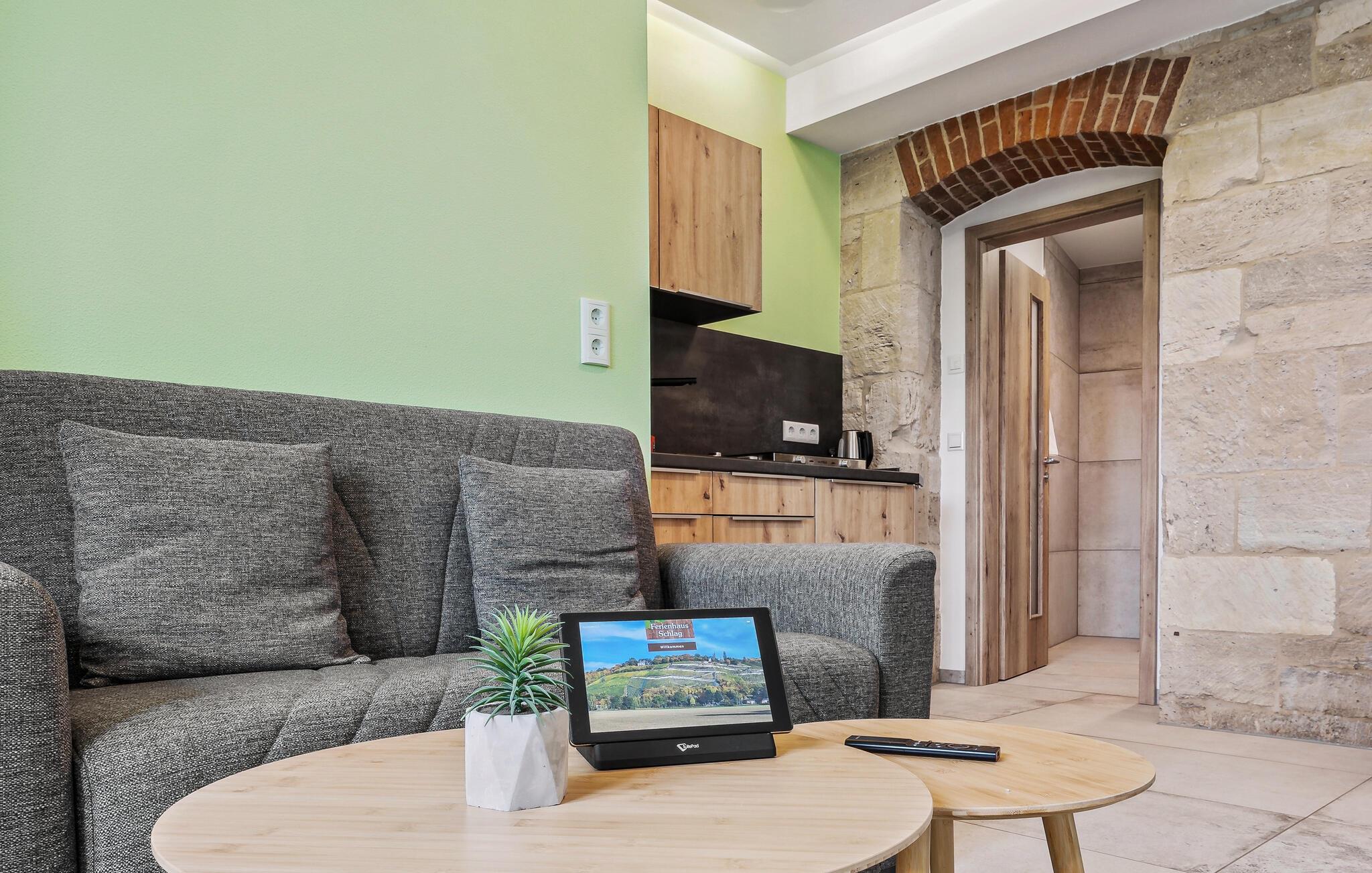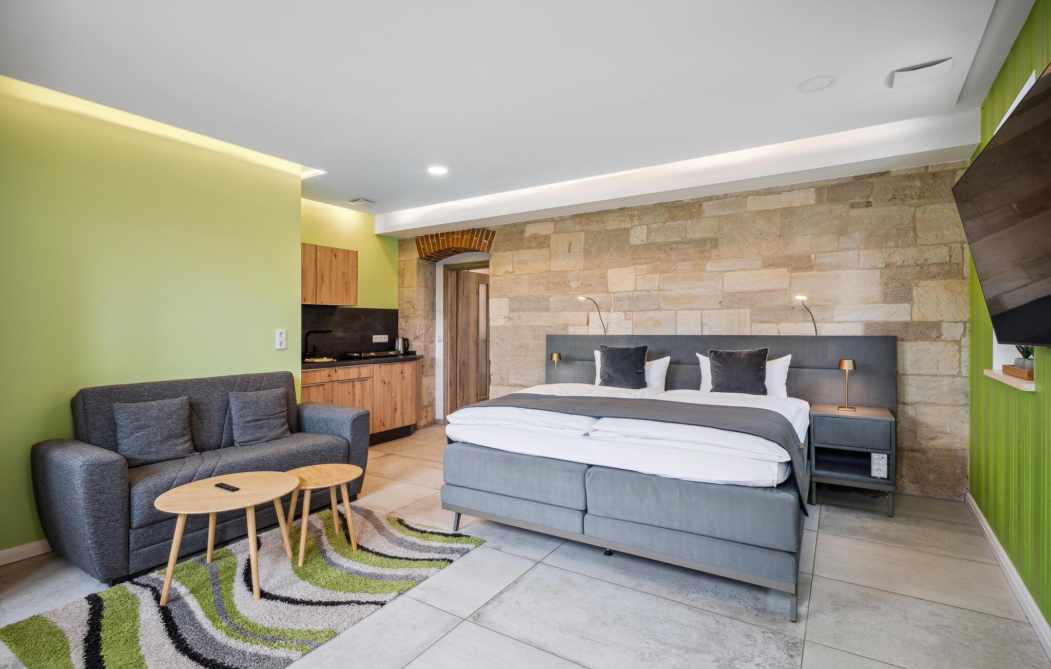 Willkommen in dieser Wohnung, die Sie nahe zahlreichen Aktivitätsmöglichkeiten in naturnaher Lage empfängt. Einladende Räume mit geschmackvoller Einrichtung, denen Felswände und die ansprechende Farbgebung den besonderen Charme verleihen, bilden eine angenehme Basis für einen erholsamen Urlaub zu zweit. Freuen Sie sich nach einem aktiven Urlaubstag auf gemütliche Abende auf dem bequemen Sofa.