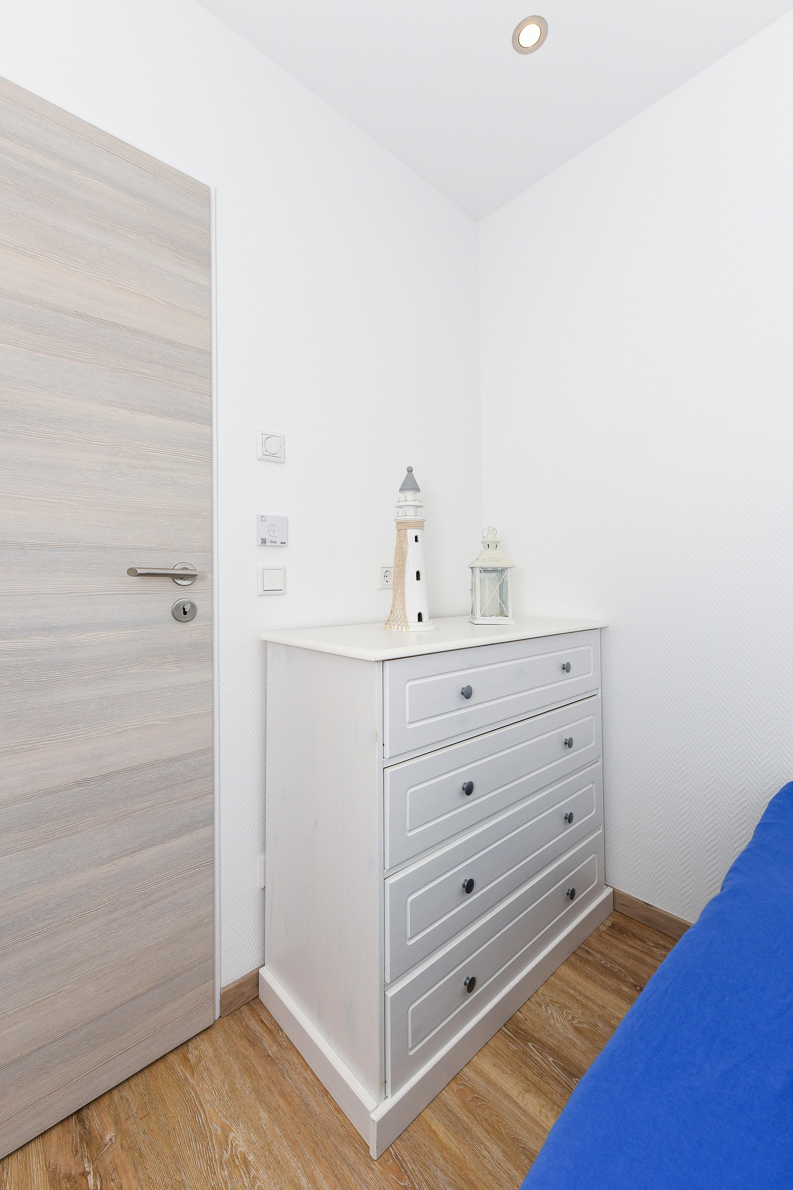 Die Wohnung ist wie folgt aufgeteilt. Im Wohnraum befindet sich eine Küchenzeile (Filter Kaffeemaschine, Toaster, Wasserkocher, Kühlschrank mit Eisfach, Sitzgelegenheiten sowie ein Sofa mit Schlaffunktion. Das Badezimmer mit Tageslicht ist mit einer Dusche und WC ausgestattet. Ein Schlafraum mit einem 180*200 Boxspringbett und ein zusätzlichen Schlafraum mit einem 140*200 Boxspringbett gehören noch mit zur Wohnung. Der kleine Flur rundet die Wohnung ab.