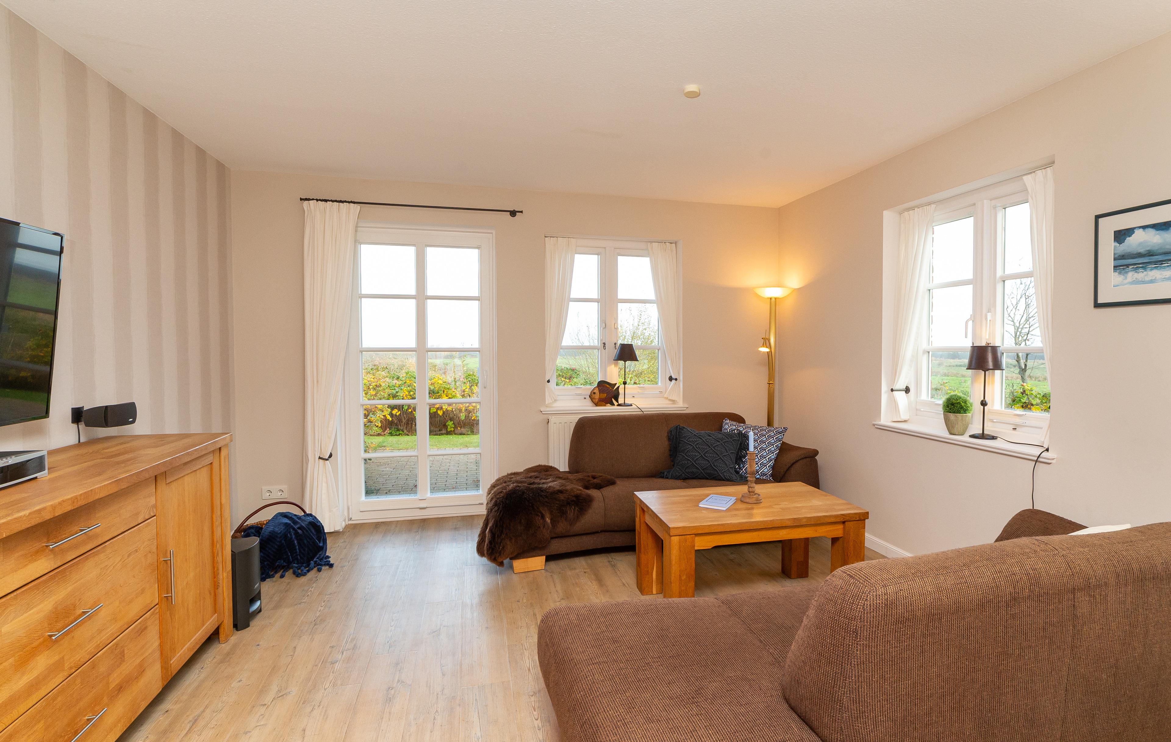 Ob als Familie, alleine oder zu zweit - die Ferienwohnung Lachmöwe bietet allen Urlaubern das herrlichste Zuhause auf Zeit an. Aus der gesamten Wohnung heraus genießen Sie einmalig schönen Meerblick über die Norddorfer Salzwiesen, hinüber zur Nachbarinsel Föhr und Sylt.