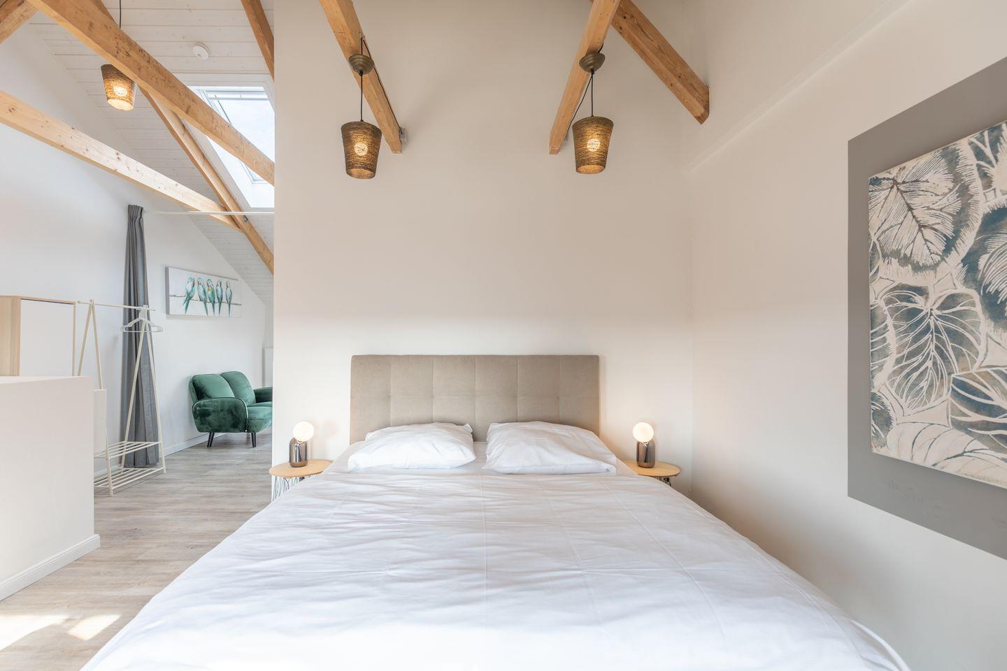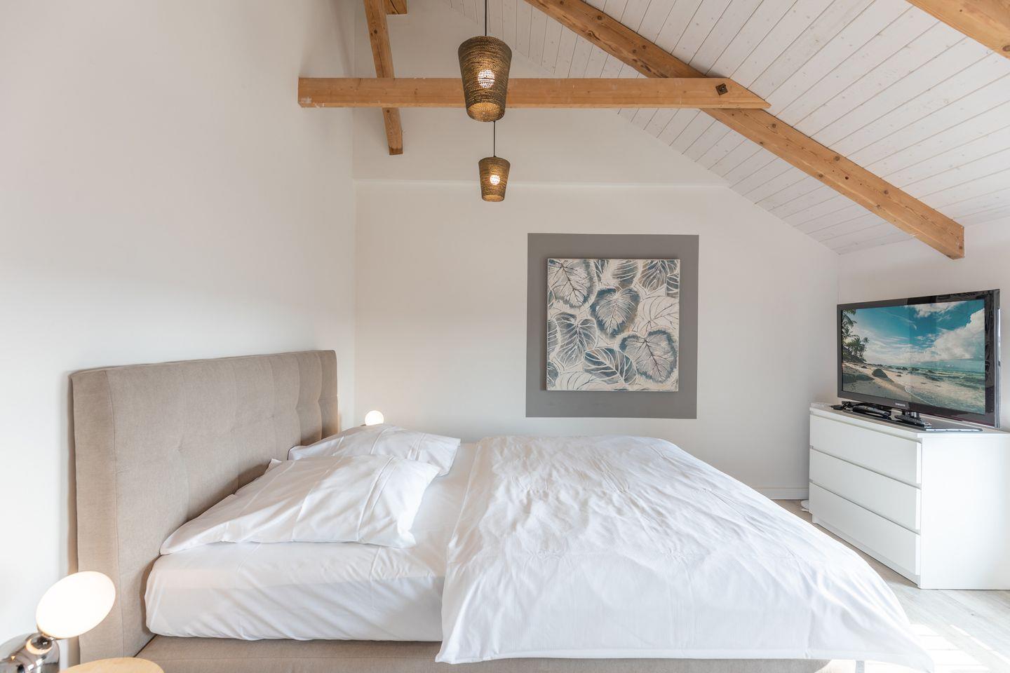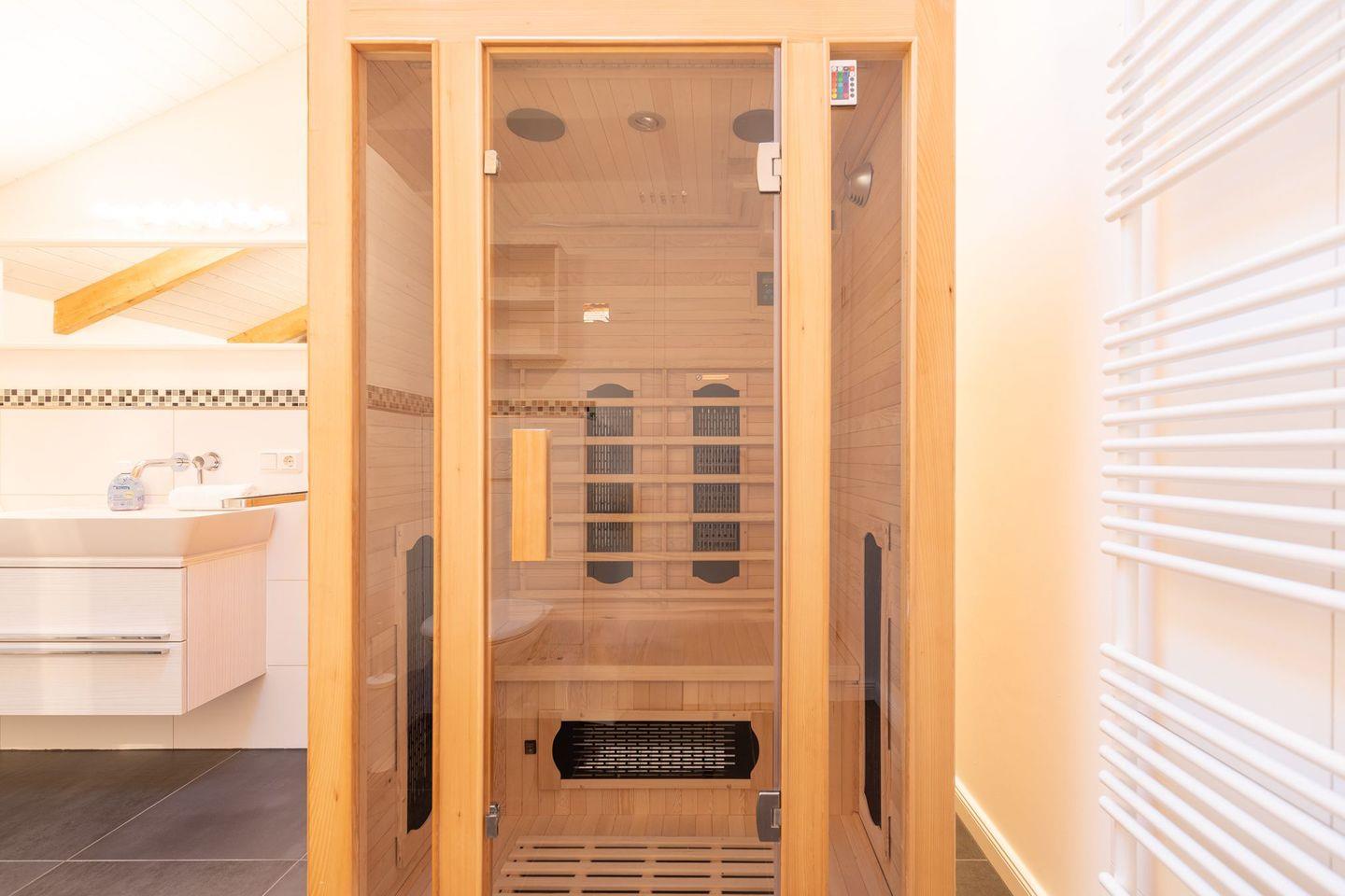 Das geschmackvoll und modern eingerichtete Apartment bietet Platz für bis zu 2 Personen. Der Schlafbereich (1 Doppelbett, 160 x 200) befinden sich im 1. OG (über eine geschlossene Treppe erreichbar), ebenso wie das großzügige Duschbad mit schöner Infrarotsauna zum Relaxen.