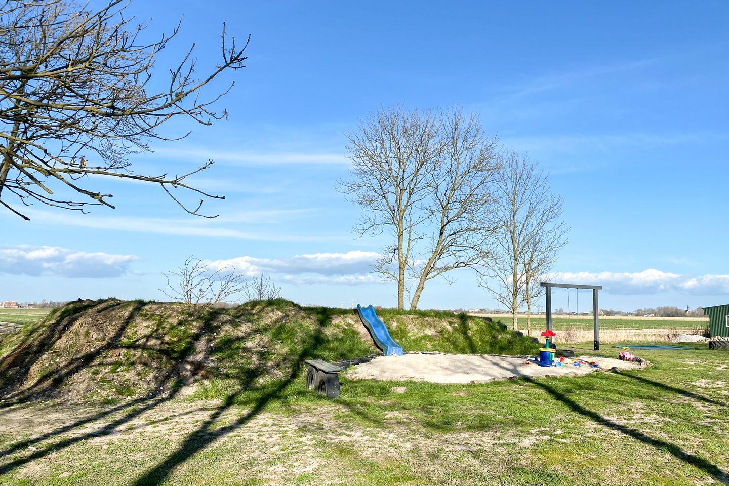 Auf der sonnigen Terrasse können Sie auf Gartenmöbeln mit Blick über die Felder und auf den Deich den Tag ausklingen lassen.