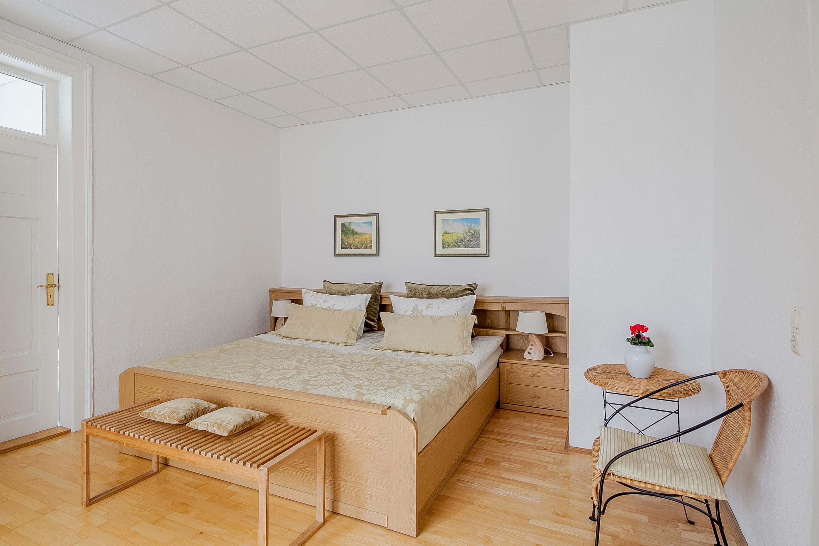 Für einen erholsamen Schlaf finden Sie bei uns ein gemütliches Doppelbett (200x200). Außerdem bietet das Zimmer ein Einzelbett und die Couch kann zu einem Bett ausgezogen werden.