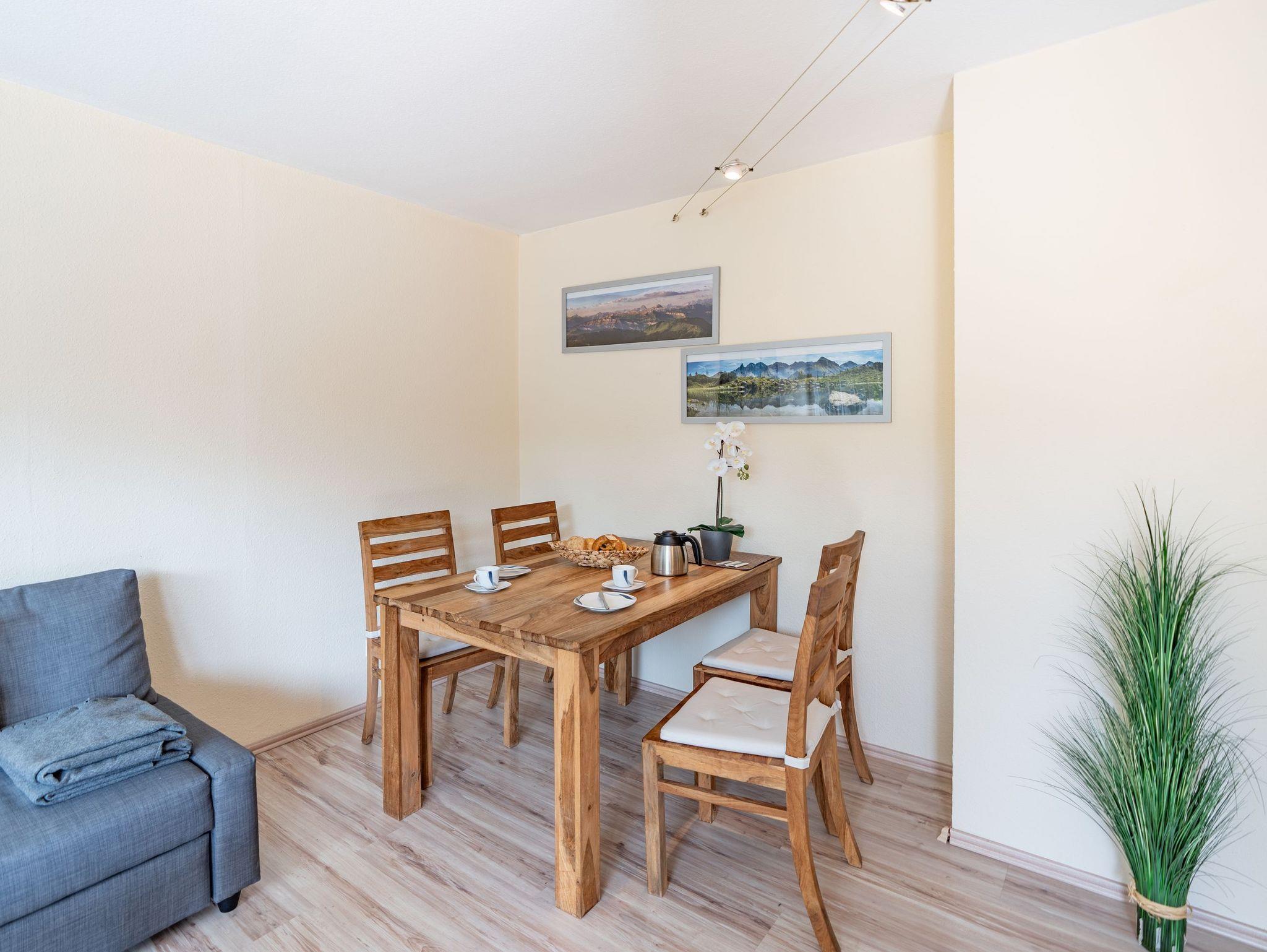 Die Wohnung besteht aus einem gemütlichen Schlafzimmer, einem modernen Badezimmer mit begehbarer Dusche, einer voll ausgestatteten Küche inklusive Geschirrspülmaschine und einem großzügigen Wohnzimmer mit Essecke. Im Wohnzimmer erwartet Sie ein komfortables ausziehbares Schlafsofa (1,60 x 2,00 Meter), das zusätzlichen Raum für zwei weitere Gäste bietet. Für Ihre Unterhaltung stehen ein SAT-TV, DVD-Player und eine Stereoanlage zur Verfügung, und Sie können selbstverständlich einen kostenlosen WLAN-Internetzugang nutzen. Der geräumige Südbalkon lädt Sie dazu ein, die Sonne zu genießen und am Abend ruhige Stunden zu verbringen.