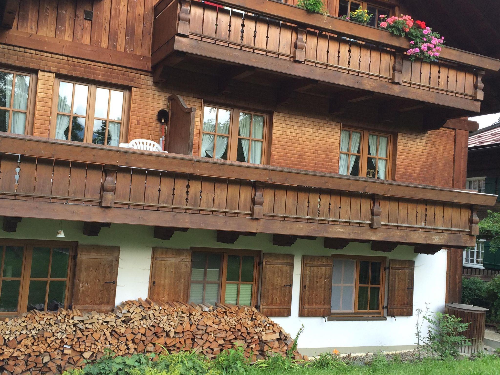 Die Ferienwohnung (renoviert 2021) liegt im 1. Stock und verfügt über zwei Balkone (Ost- und Südbalkon) mit Blick auf unseren Garten und die umliegenden Berge.