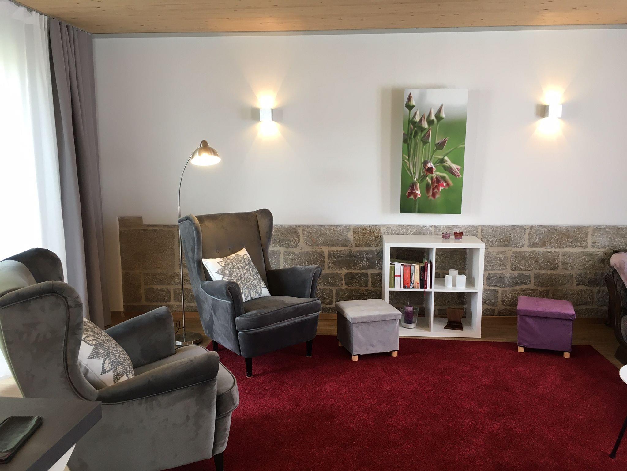 Vor dem Haus befindet sich eine großzügige Outdoor-Lounge (außer im Winter), die mit genutzt werden kann. Ca. 100 Meter vom Hof entfernt steht darüber hinaus ein Garten als weiterer Rückzugsort zur Verfügung. Unmittelbar in Anschluss an das Grundstück erstrecken sich Wiesen, Felder und Natur pur – man ist also unmittelbar im Grünen.