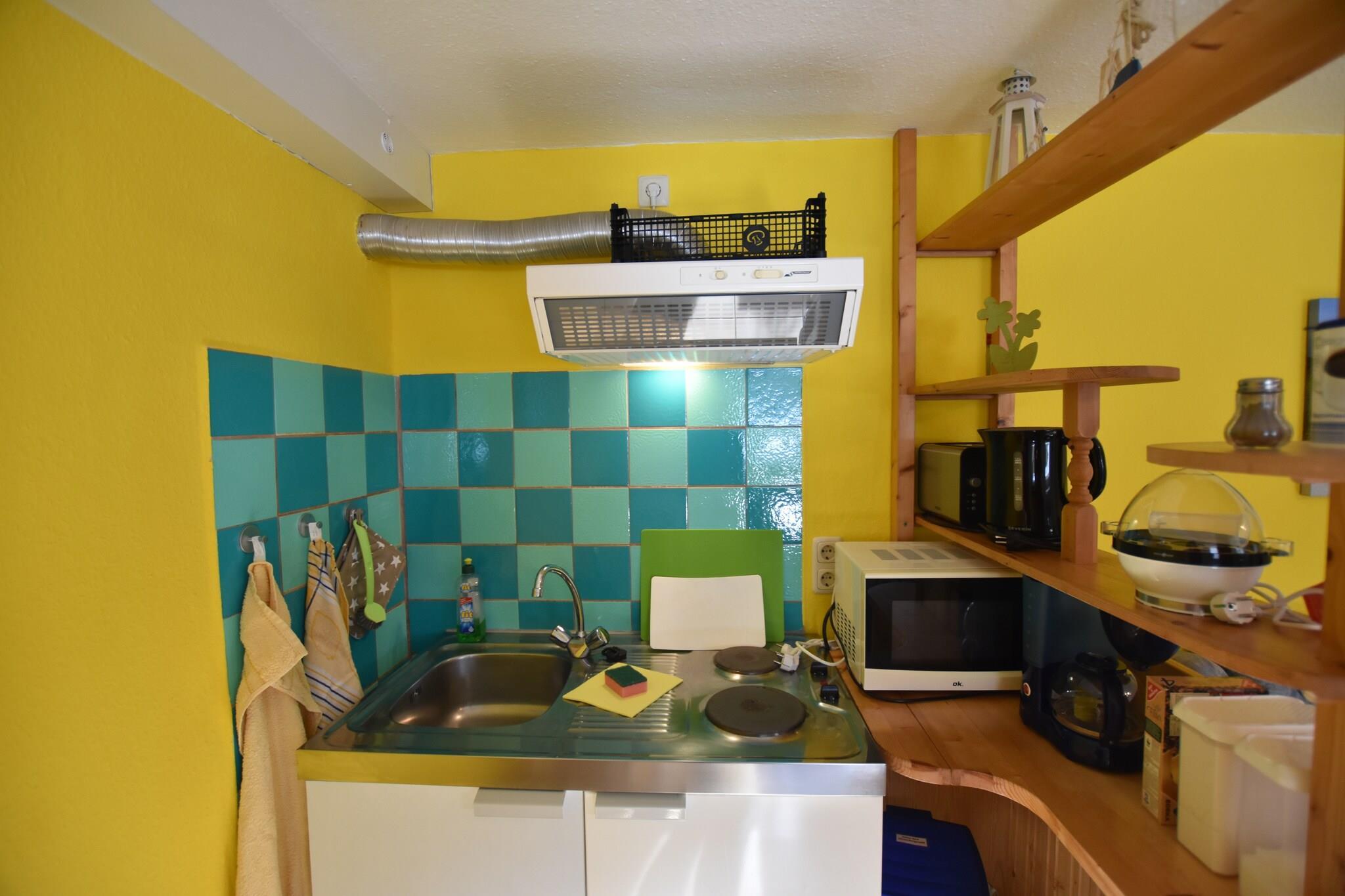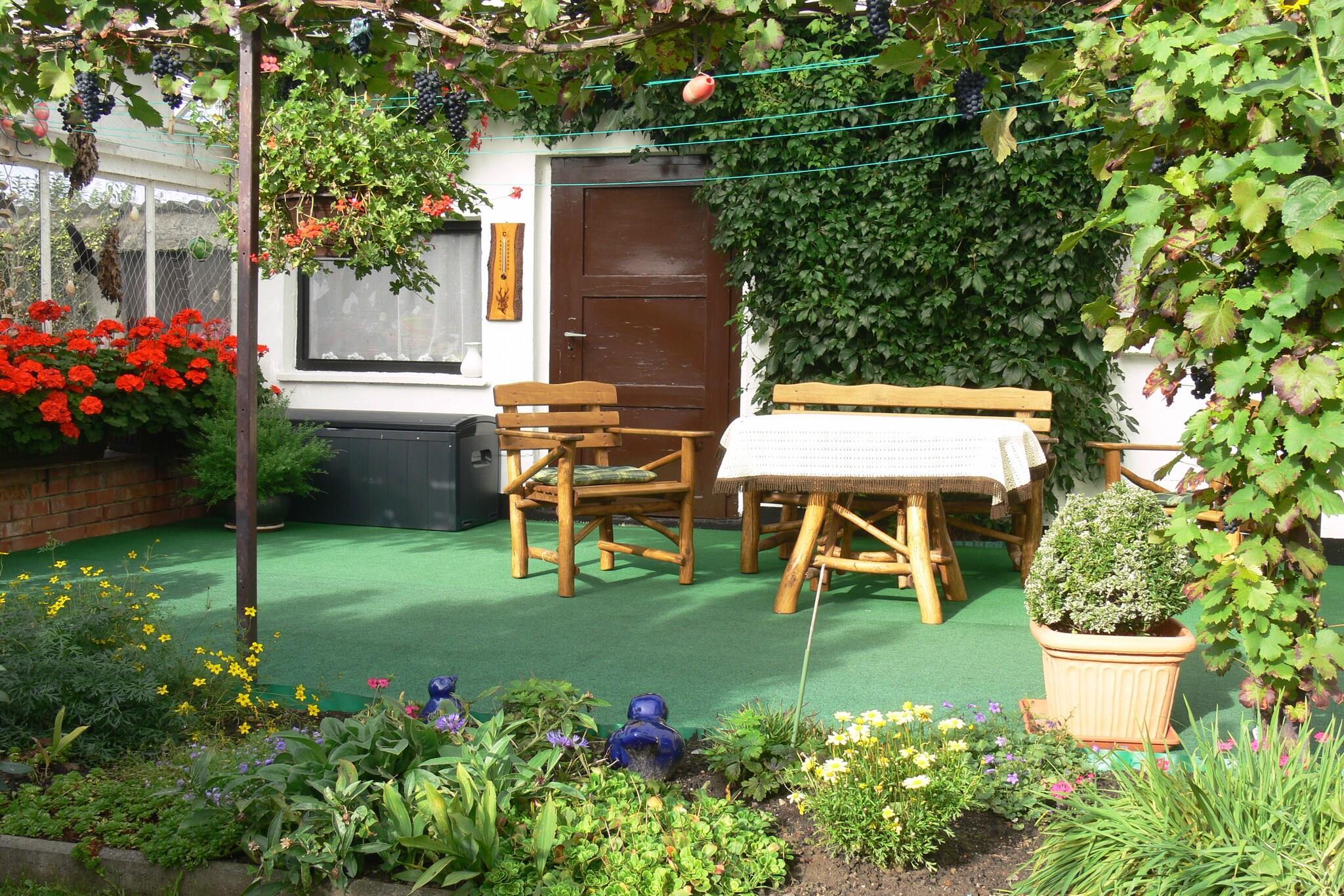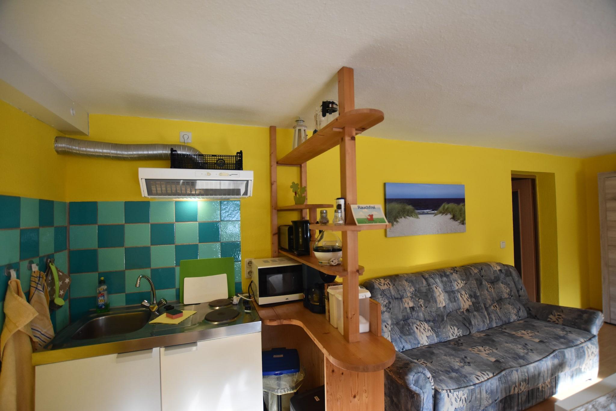 Souterrain: (Eingang(von außen erreichbar), Kochnische(Wasserkocher, Toaster, Kochherd(2 Kochplatten), Dunstabzugshaube, Kaffeemaschine, Mikrowelle, Kühlschrank), Wohn/Esszimmer(TV(Flatscreen, Satellit), Esstisch(4 Personen), Sitzecke, DVD-Spieler, Radio, CD-Spieler, Stereoanlage), Schlafzimmer(Doppelbett king size(170 x 200 cm)), Durchgangszimmer(Einzelbett), Badezimmer(Dusche, Waschbecken, Toilette, Föhn), Heizung, Kinderbett, Hochstuhl) Terrasse(überdacht), Garten(Gemeinschaftliche Nutzung mit dem Eigentümer, umzäunt), Gartenmöbel, Grill