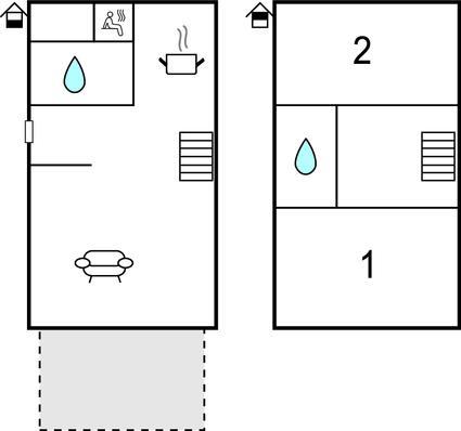 Badezimmer 6m2 (nr. 1) - WC. Warmes und kaltes Wasser. Dusche