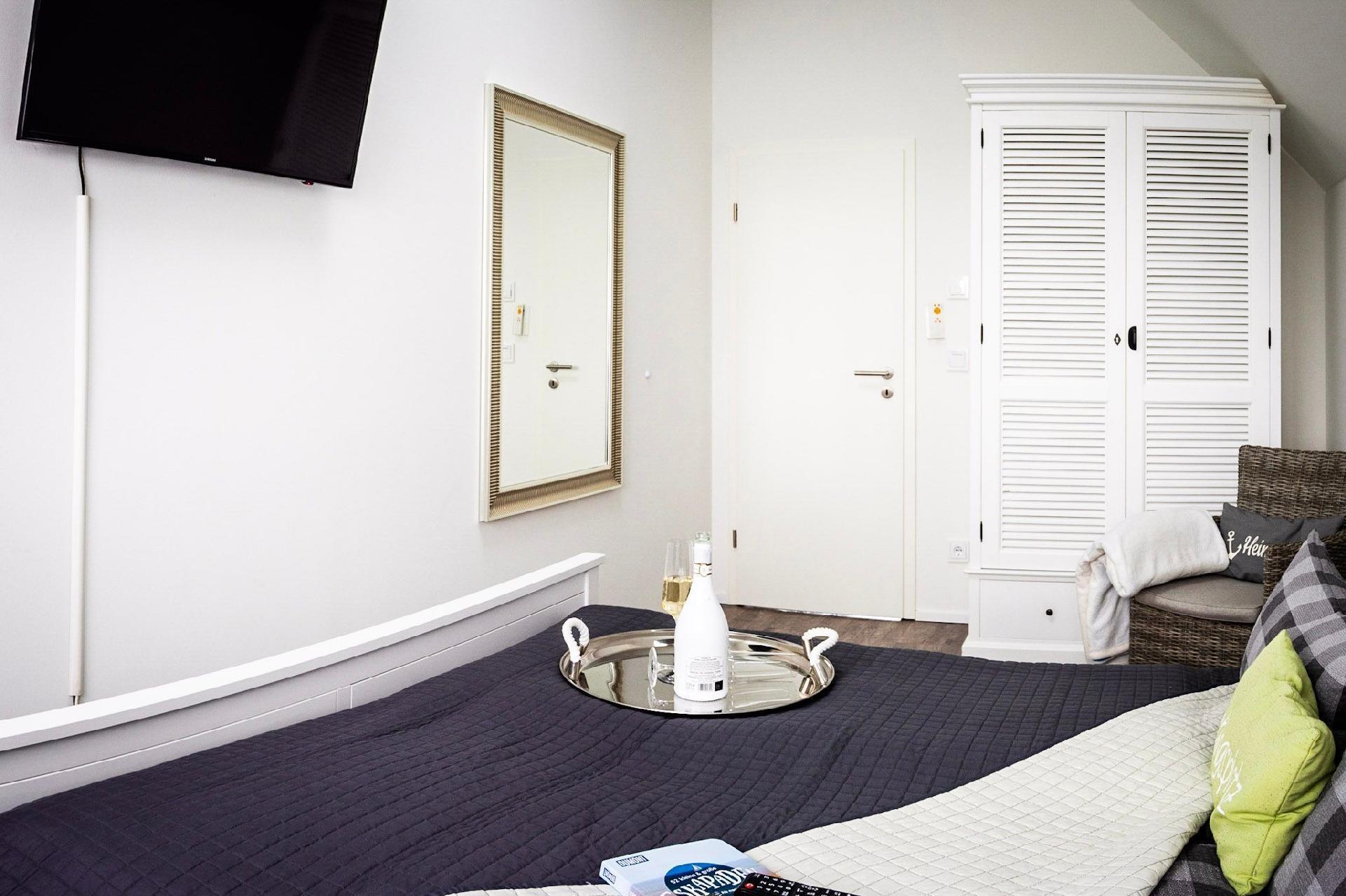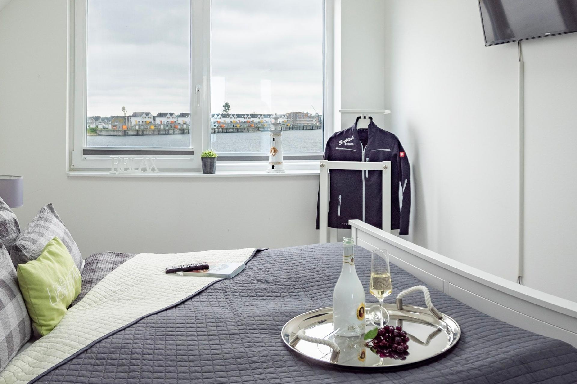 Bei diesem Ferienobjekt handelt es sich um eine Maisonette Wohnung im ersten und zweiten Obergeschoss.Die Ferienwohnung Ostseeflair by Seeblick Ferien ORO betritt man über eine Außentreppe, von hier könnte man sofort auf den ersten Südbalkon (ca.25 m²) gelangen, der mit einem Strandkorb, Teak-Deckchair und weiteren gemütlichen Möbeln zum Relaxen auf Sie wartet. Der Eingangsbereich führt in den Wohn-und Essbereich mit zusätzlichem Duschbad und WC. Auf der zweiten Ebene befindet sich Ihr Badezimmer, dies lässt Wellnessherzen höherschlagen, denn es verfügt über eine bodengleiche XXL Walk-In-Dusche, eine Whirlpool-Badewanne, eine Sauna (Infrarotkabine) mit Farblichttherapie und ein Radio mit Bluetooth. An der Wellnessoase vorbei, folgen zwei gut gestaltete Schlafzimmer mit Platz für fünf Erwachsene und einen traumhaften Blick aufs Wasser. Das Masterbedroom verfügt über ein Doppelbett (1,80 x 2,00) mit zusätzlichem 40 Zoll Smart TV, Blick auf die Marina, während ein Etagenbett (unten1,40 x 2,00 max.180kg), (oben 90x200 max. 75 kg) für 3 Personen im zweiten Schlafzimmer mit Blick auf die Schlei, auf Sie wartet. Im Fokus steht aber der perfekt umgesetzte lichtdurchflutete Wohn- und Essbereich mit Holz befeuertem Kaminofen, bodentiefen Panoramafenstern, welcher Loftartig gestaltet ist, sodass alle Räume fließend ineinander übergehen und sich der Wohnbereich mit der Natur verbindet. Die Integration der offenen Küche mit hervorragender Ausstattung und funktionalem Design, steht dem gemütlichen Beisammensein auch beim Zubereiten von allerlei Köstlichkeiten nichts im Wege. Die Wasserkulisse vor dem Essbereich mit 180 Grad Panoramablick auf den gesamten Hafen und die Ostsee ist hierbei zum Greifen nah – das ist Ostseeflair. Den zweiten Nordbalkon (ca. 8m²) betritt man über den Wohnbereich, hier können es sich unsere Gäste auf einer zusätzlichen Bestuhlung gemütlich machen und bei einem Sundowner mit Abendsonne den Tag ausklingen lassen.Bei dieser Wohnung sind spektakuläre Sonnenlichtspiele durch die zwei Balkone in Süd- und Nordausrichtung zu erwarten. Der Einrichtungsstil entspricht der exklusiven Lage der Ferienwohnung: Landhausstil gepaart mit klaren Farben und Formen versprechen Ruhe und Rückzug, während einzelne Farbakzente für erfrischende Leichtigkeit sorgen.Die gesamte Ferienwohnung lässt sich über die Fußbodenheizung einfach temperieren und bietet dank des Kaminofens und der Sauna das ganze Jahr über eine angenehme Wärme und eine gemütlich-wohlige Atmosphäre. Für Unterhaltung sorgen im Wohnbereich ein 55 Zoll Smart TV mit Bluetooth und Samsung Soundbar, eine Playstation, Blu-ray-Player, ein separates Internet Radio sowie eine Spielesammlung.Der Weber Elektrogrill rundet die hochwertige Ausstattung ab.Haustiere sind in dieser Fewo nicht gestattet.Unsere Fewo ist ein Nichtraucherobjekt.kostenloses WLANEin Kinderreisebett und ein Kinderhochstuhl stehen für unsere kleinen Gäste bereit. Bettwäsche/ Handtücher können selbst mitgebracht oder aber in Form von Wäschepaketen von unserer Agentur ausgeliehen werden. Die Betten wären dann bei Anreise bezogen. Die Wäschepakete müssen Sie separat bestellen.Heizungs-, Strom- und Wasserkosten sind im Mietpreis der Fewo Ostseeflair by Seeblick Ferien inbegriffen.Eine Kaution ist bei Anreise zu hinterlegen, diese werden sofort bei Check Out erstattet.Bei Fragen oder Problemen vor Ort stehen wir Ihnen gern zur Verfügung. Vor Ort ist außerdem unser Gästeservice, der Ihnen gern weiterhilft und mit Ihnen, ganz im Gegensatz zu einigen Mitanbietern, gemeinsam in die Wohnung fährt und Ihnen alles zeigt. Bei uns geniesen Sie die exklusivität eines persönlichen Check In und Out in Ihrer gebuchten Ferienwohnung. Es gelten verschiedene Preise und Mindestaufenthalte zu verschiedenen Saisonzeiten, welche technisch bedingt von der angegebenen Nächteanzahl abweichen können.