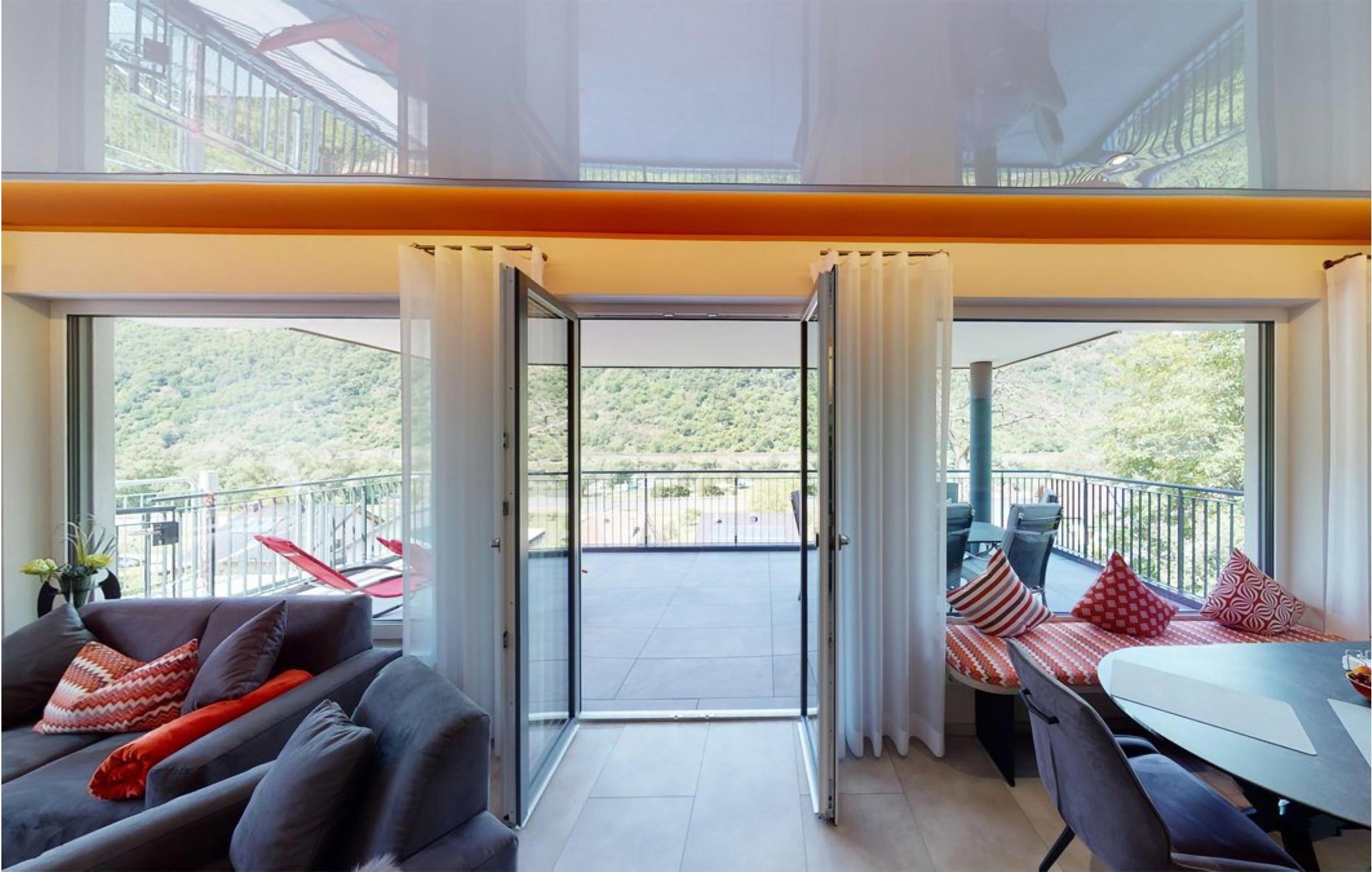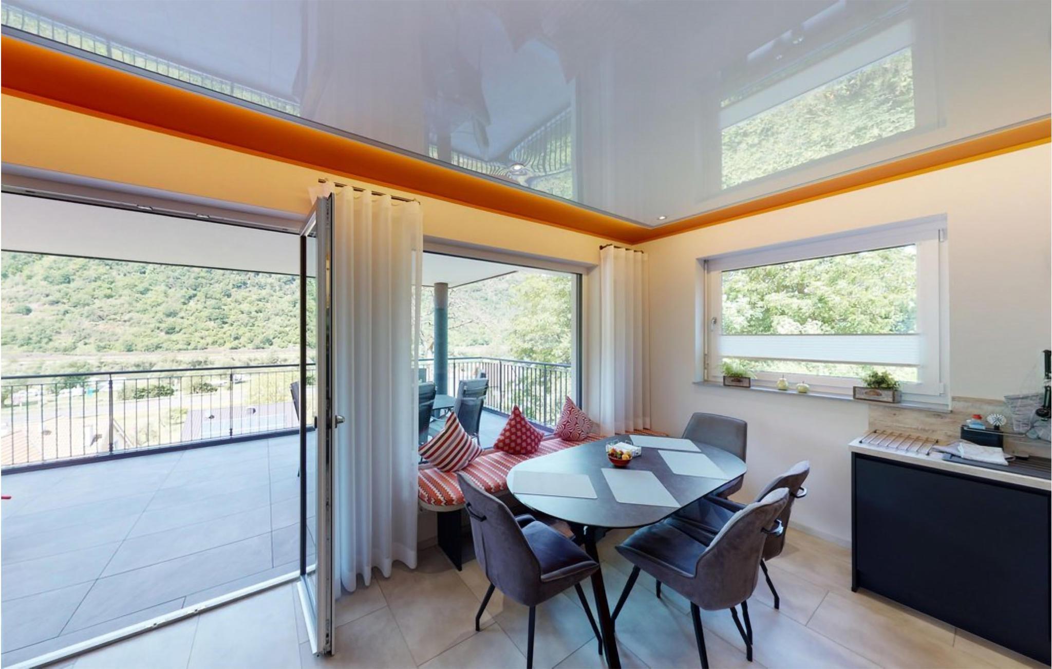 Willkommen in der modernen Ferienwohnung Casa Lion in Burgen, die sich durch ihre hochwertige Ausstattung und traumhafte Hanglage über der Mosel auszeichnet. Diese Wohnung bietet Ihnen ein stilvolles Ambiente. Der offene Wohn- und Essbereich dieser lichtdurchfluteten Erdgeschosswohnung ist ideal gestaltet, um gemeinsame Stunden zu genießen. Entspannen Sie auf der bequemen Wohnlandschaft mit Blick auf die Mosel oder bei einem romantischen Abend vor dem elektrischen Kamin mit Heizfunktion. Die moderne Küche ist mit allem ausgestattet, was Sie für Ihre Mahlzeiten benötigen.