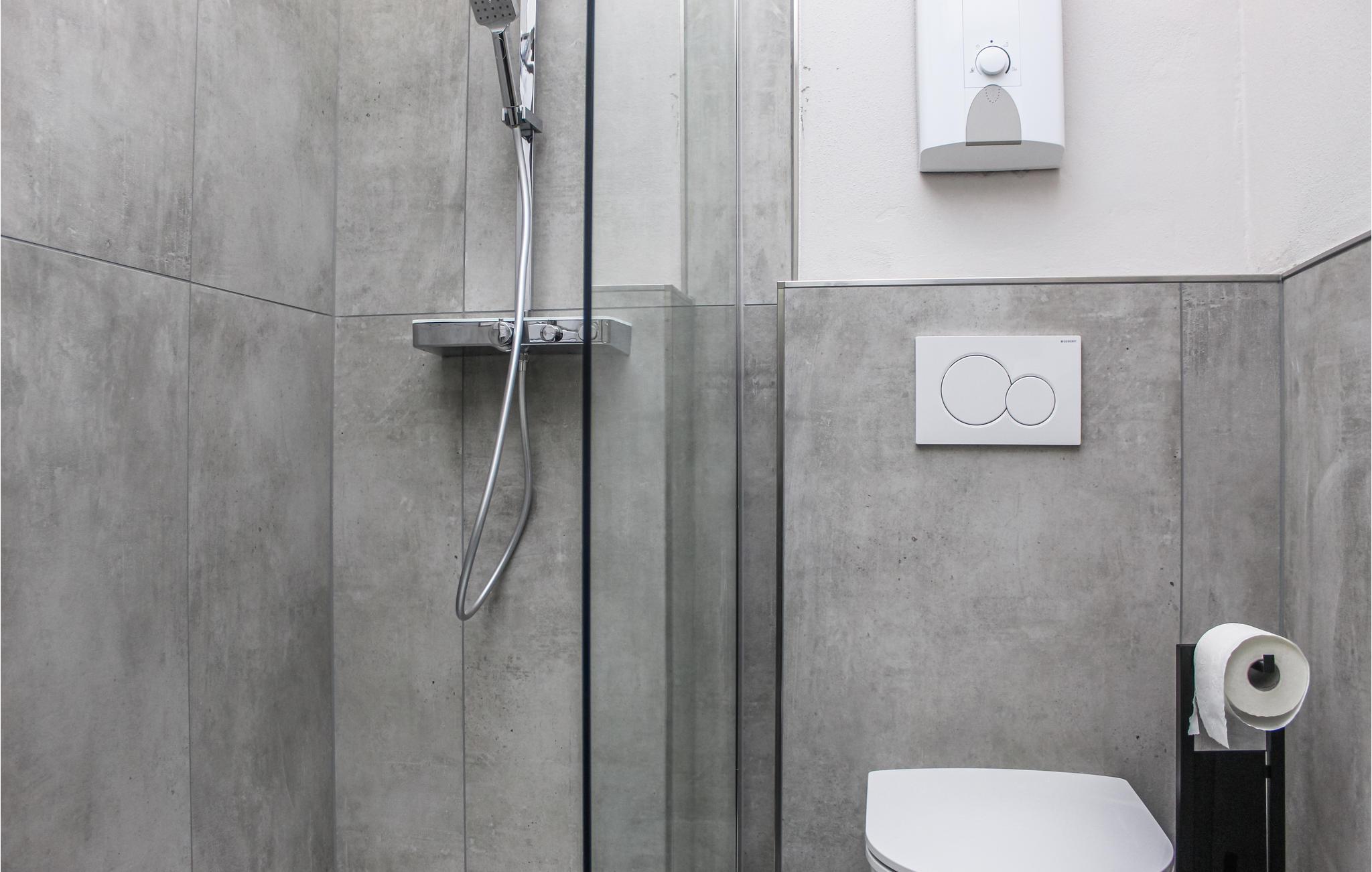 Das Badezimmer hat einen Zugang von außen