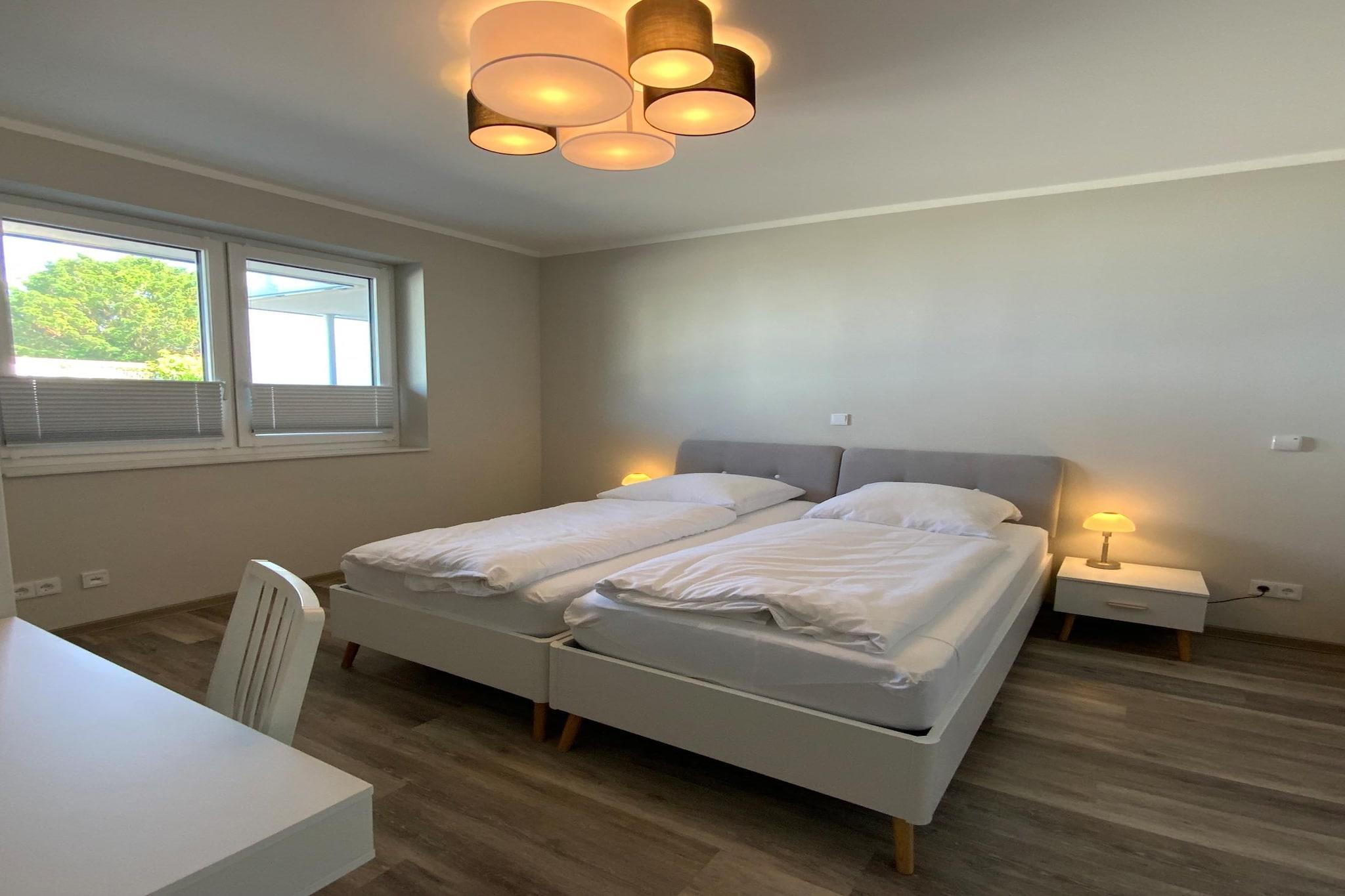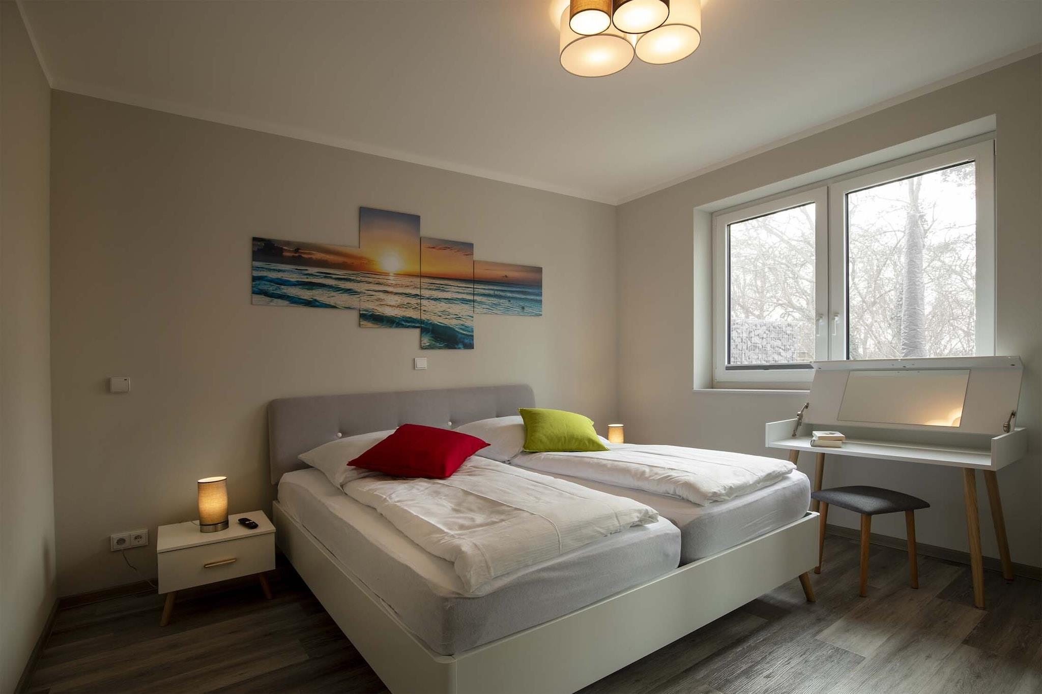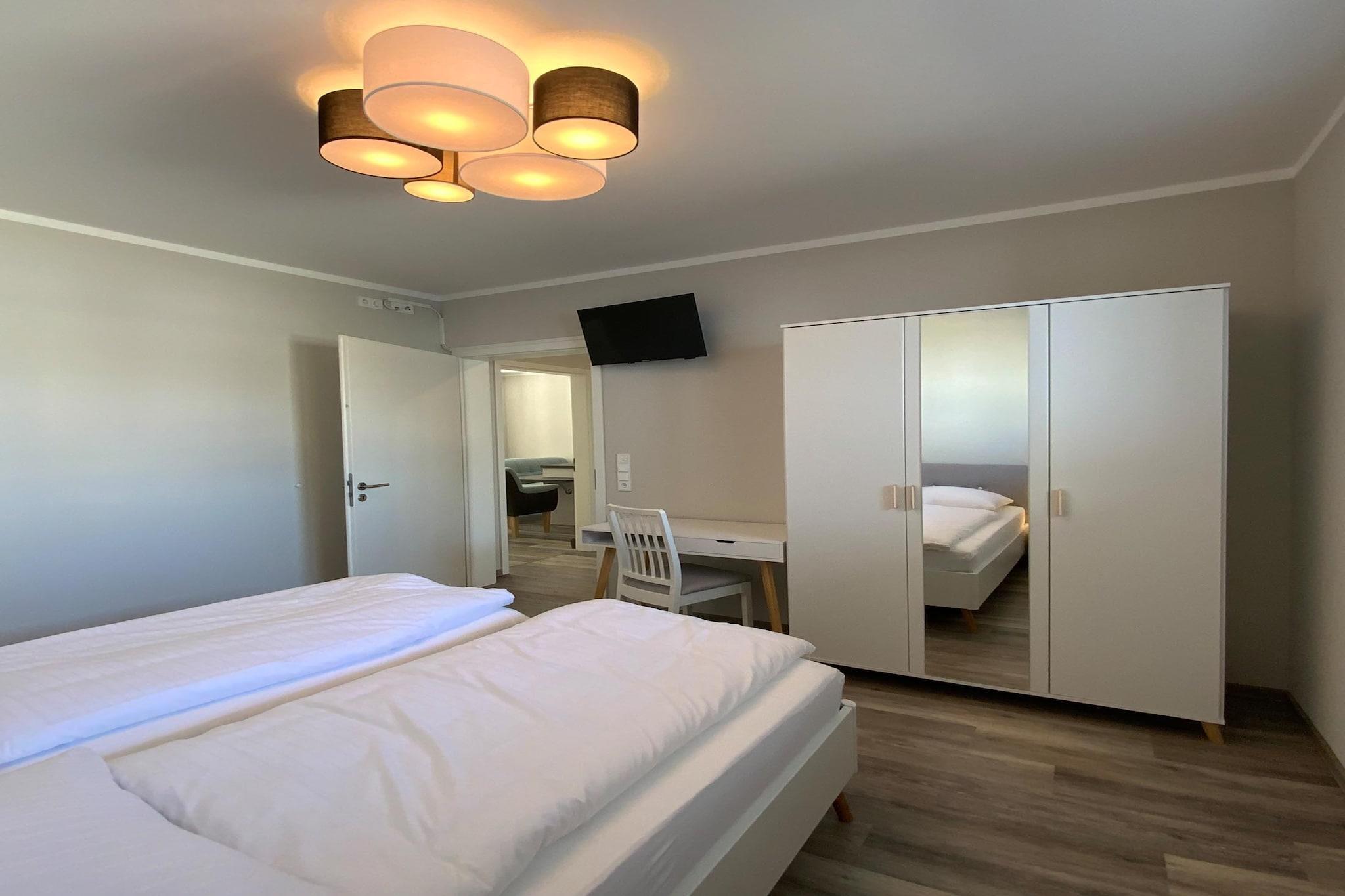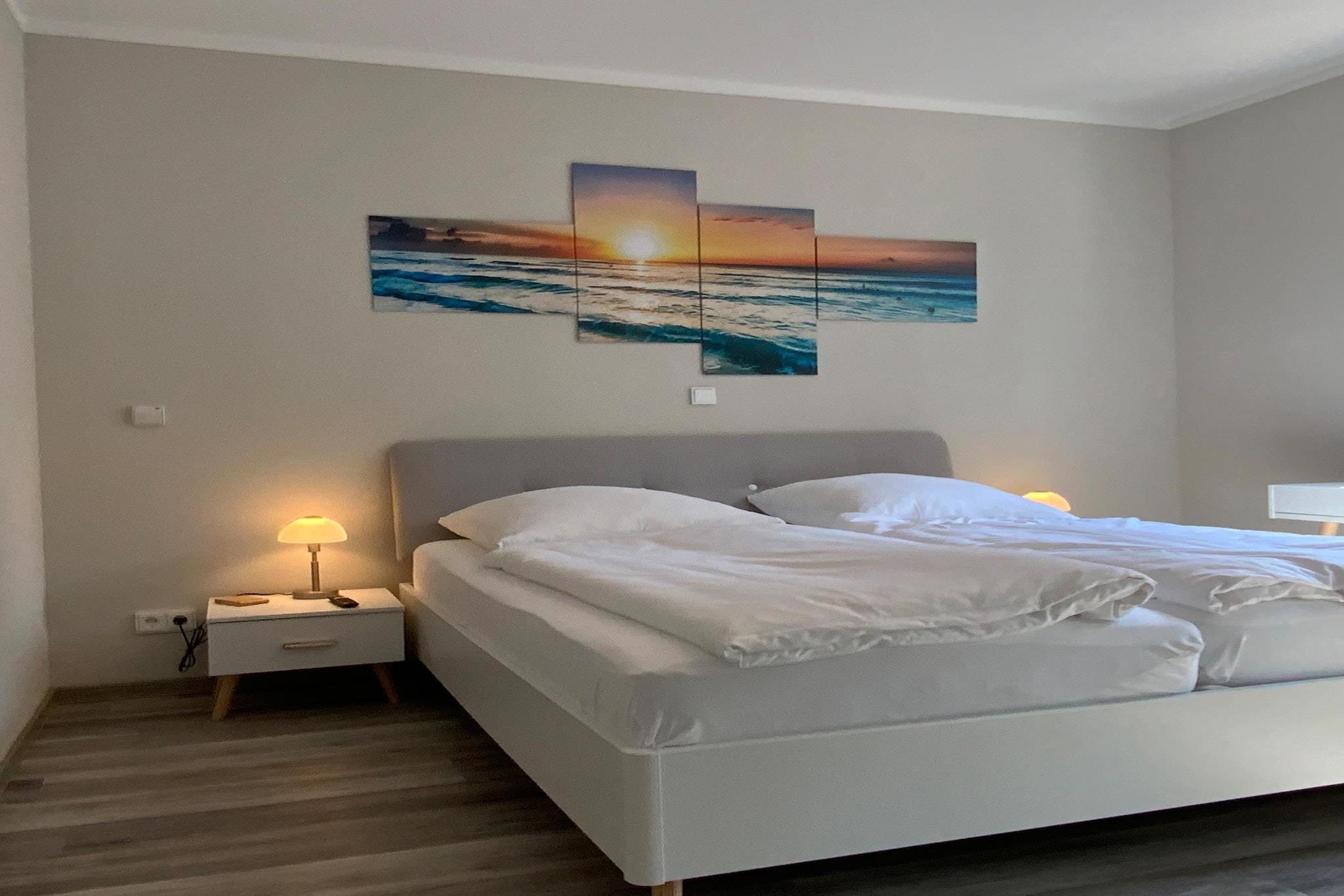 In unserer wunderschönen und modernen 86 m² großen Ferienwohnung werden Sie sich wohlfühlen - probieren Sie es aus! Die neue Ferienwohnung "Magellan" befindet sich im Erdgeschoss des Mehrfamilienhauses und hat durch seine Barrierefreiheit eine breite Eingangstür von ca. 90 cm. Auch die Zimmertüren haben diese großzügige Breite. Ein PKW-Stellplatz steht Ihnen direkt vor dem Haus zur Verfügung. Es erwartet Sie ein geschmackvolles, lichtdurchflutetes, modernes und freundliches Ambiente. Die Liebe für die Details spüren Sie von der ersten Sekunde und der Aufenthalt in dieser tollen Ferienwohnung lässt Sie den Alltag vergessen. Die Wohnung verfügt über ein großzügiges Wohnzimmer mit einer Ausziehcouch und großem 55" Smart TV sowie einer Soundbar. Direkt am Wohnzimmer befindet sich die maßgeschneiderte offene Küche, welche mit hochwertigem Geschirr und Haushaltsgeräten ausgestattet ist. Für begeisterte Köche bleiben hier keine Wünsche offen. Die Ferienwohnung verfügt auch über eine großzügige Terrasse, auf welcher Sie Ihr Frühstück genießen oder den Tag ausklingen lassen können. Sollte das Wetter einmal nicht Ihren Wünschen entsprechen, können Sie die Abende auch vor dem gemütlichen und romantischen Kaminofen im Wohnzimmer genießen. Alle Betten sind mit hochwertigen Matratzen ausgestattet, welche eine weiche und eine härtere Seite haben. Das Hauptschlafzimmer verfügt über ein Doppelbett und einen 32" Smart TV. Im zweiten Schlafzimmer befindet sich ebenfalls ein 32" Smart TV sowie 2 Einzelbetten. Das Bad punktet mit einer ebenerdigen, breiten Dusche die man durch eine ca. 1,20 m breite Tür betreten kann, sowie einer Badewanne. Highlights inklusive: Alle verbrauchsabhängigen Energiekosten WLAN Pkw-Stellplatz Aufzug Der Ort Petersdorf liegt im Westen der wunderschönen Insel Fehmarn. Bis zum Badestrand in Bojendorf sind es ca. 3 km. Die nächsten größeren Einkaufsmöglichkeiten befinden sich ca. 400 m entfernt mit diversen Einkaufsmöglichkeiten, Supermärkten wie Edeka, Aldi und einen Bäcker, kleine Boutiquen sowie Friseure, einen Arzt und eine Physiotherapie. Kleine Restaurants und Cafés laden zum Verweilen ein. Die schöne Petersdorfer Kirche ist einen Besuch wert.