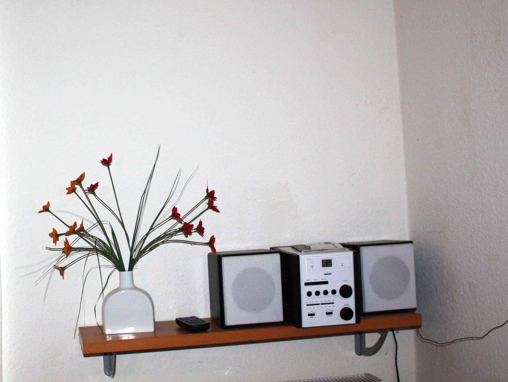 EG: Vorflur mit Garderobe, Schlafzimmer mit DB (1.80 x 2m), Duschbad, Wohn-/Esszimmer mit offener, vollausgestatteter Küche, zum Wohnbereich abgeteilt durch einen Bartresen und offener Treppenbereich zum Keller und Obergeschoss.