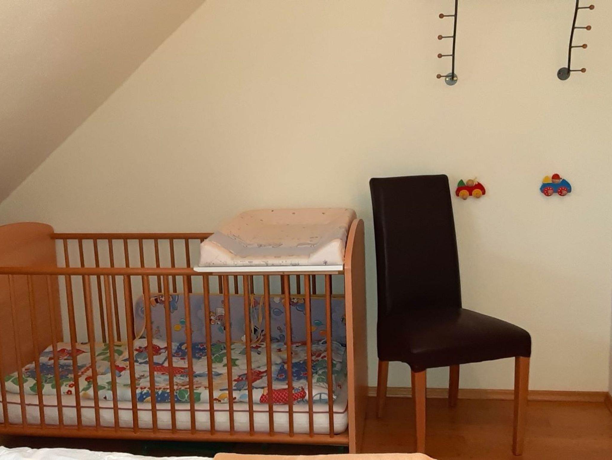 Im OG befinden sich 1 Schlafraum mit DB u. Kinderbett, 1 weiteres Schlafzimmer mit DB und Schlafsofa, sowie ein Bad.